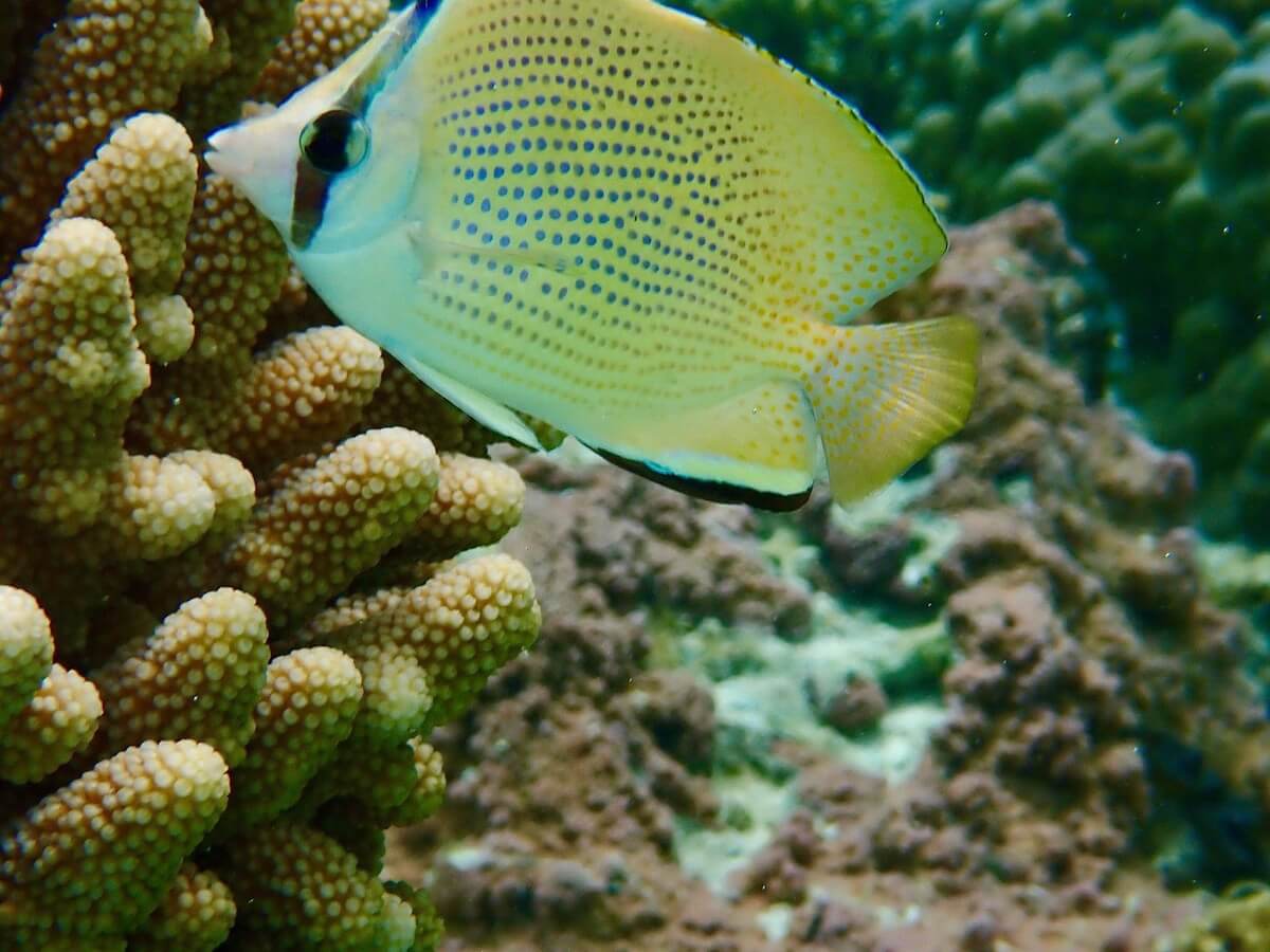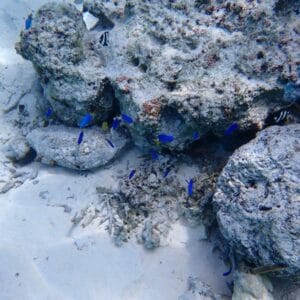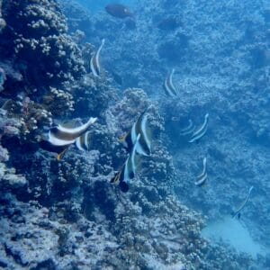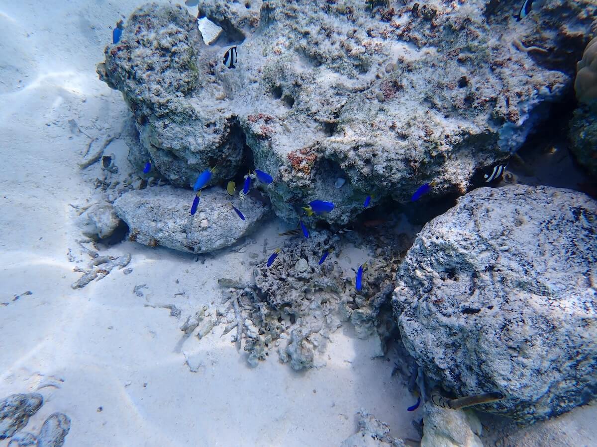 The very dense underwater life found in this area includes butterflyfish, triggerfish, surgeonfish, bannerfish, and many other species. On the seabed you be able to see some of the cushion starfish that live in the bay. Stingrays and, more rarely, spotted eagle rays, are also seen in this area.