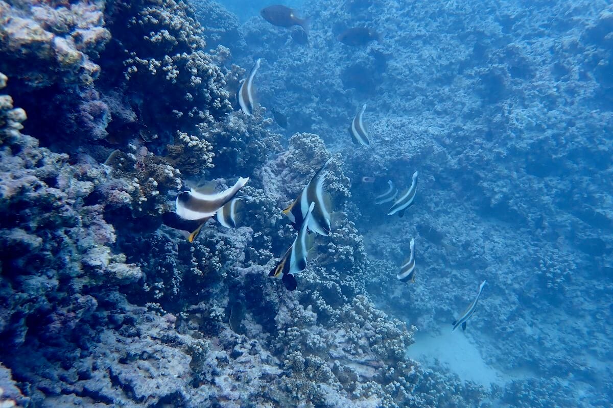 We advise that you enter the water directly from the beach in front of the area you want to explore. The recommended entry points are Snack Otoamana for snorkeling the sandbanks (zone 1 on the map), and Snack Matira for the coral patches (zone 2 on the map).