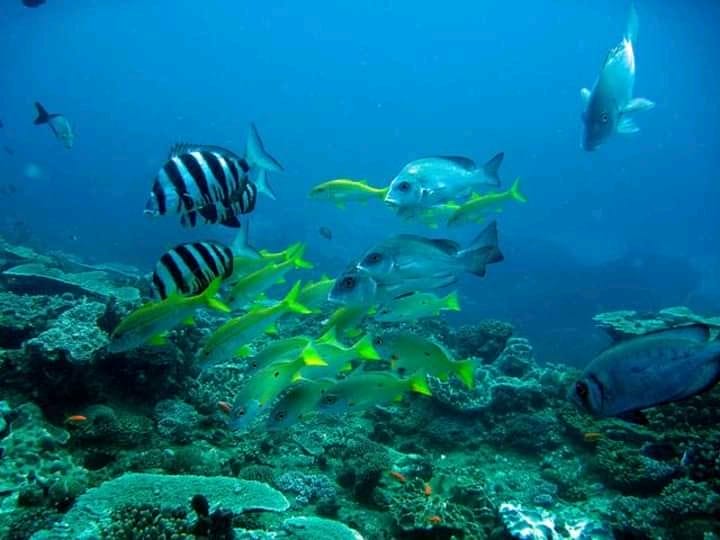 During your reef exploration, you will encounter schools of dozens of Bengal snappers, Moorish idols, clownfish in sea anemones, powder blue tang, as well as a multitude of other species.