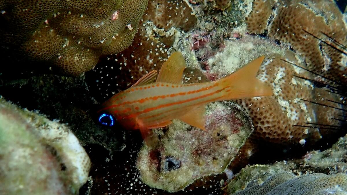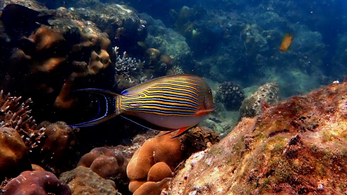 This poor underwater environment is however home to a dazzling array of life, including dozens of fish species swimming around the reef. First and foremost are the anemonefish, after which Nemo Beach was named. At least four different species can be encountered at reef, including the iconic Ocellaris clownfish – the species list is available at the bottom of the page.
