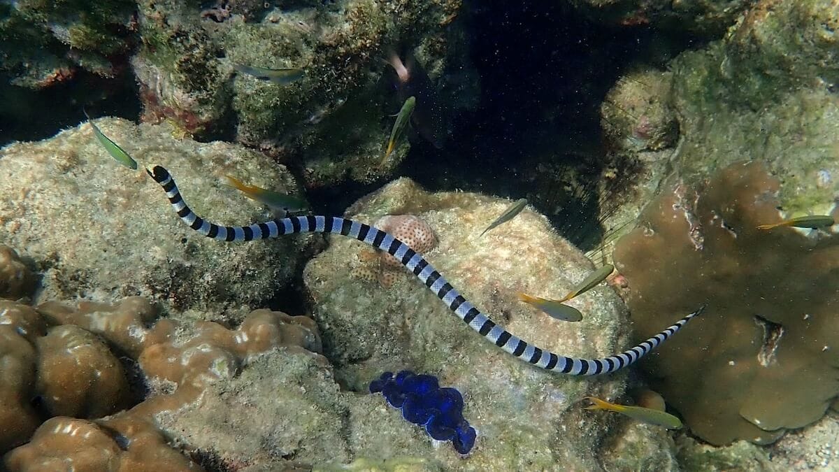 As almost everywhere in Havelock, Nemo Beach allows for frequent Sea krait encounters. This sea snake lives most of the time on land but feeds underwater.