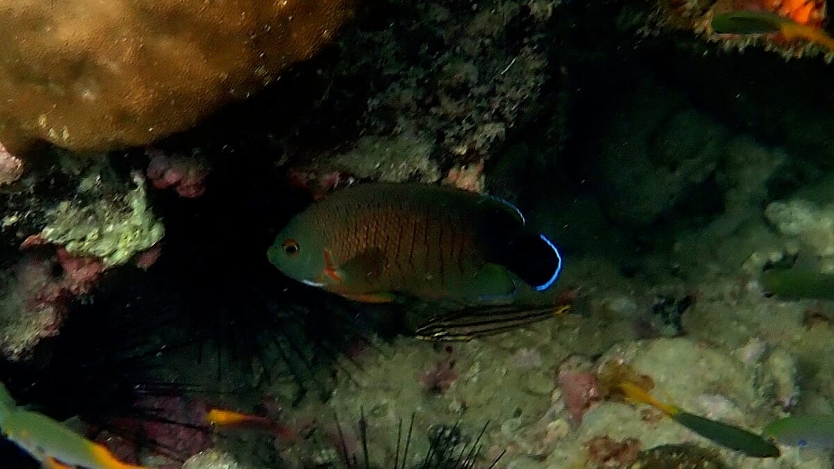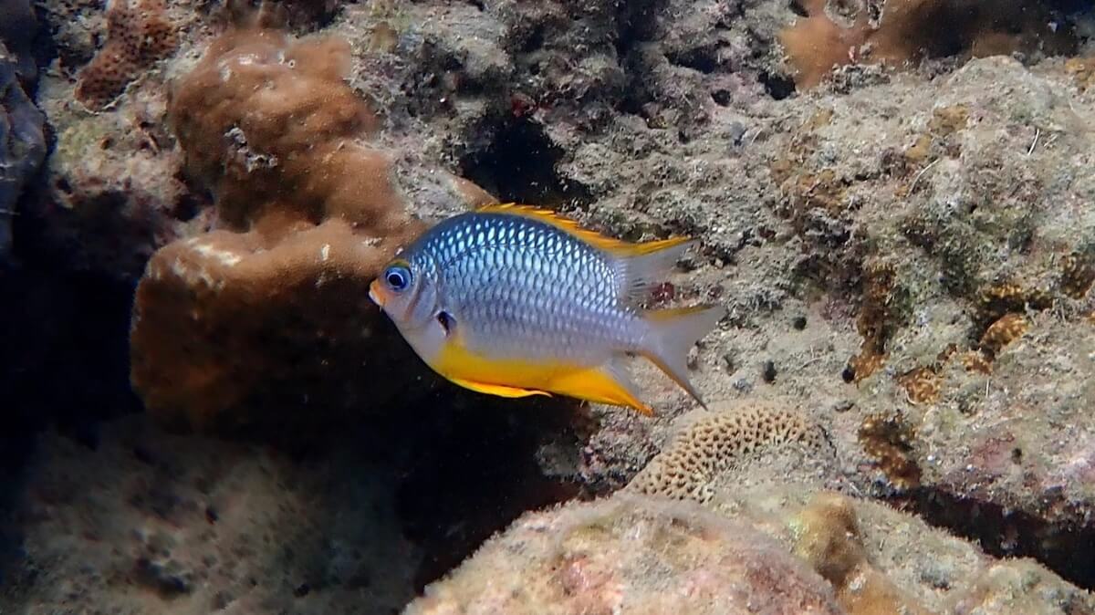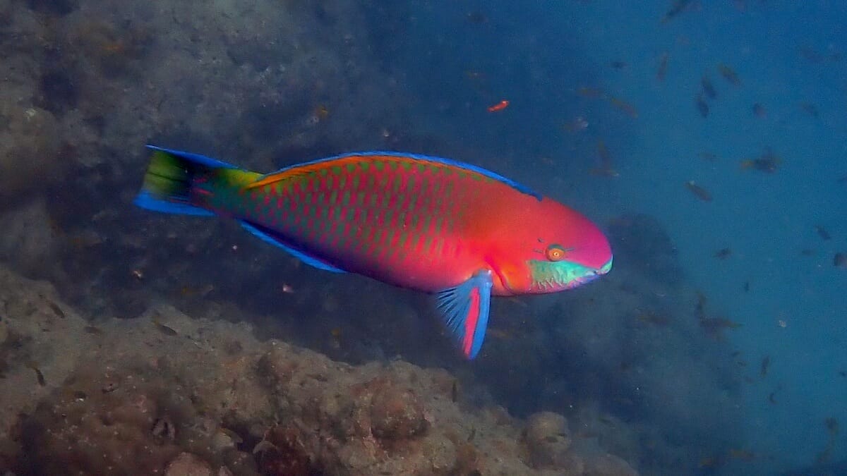 Nemo Beach isn’t a coral location. Most corals are badly damaged, and only a few branching and finger coral heads can be seen on the almost bare seafloor.