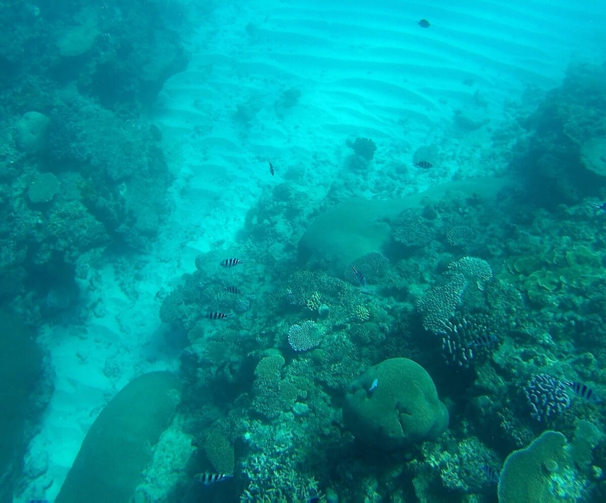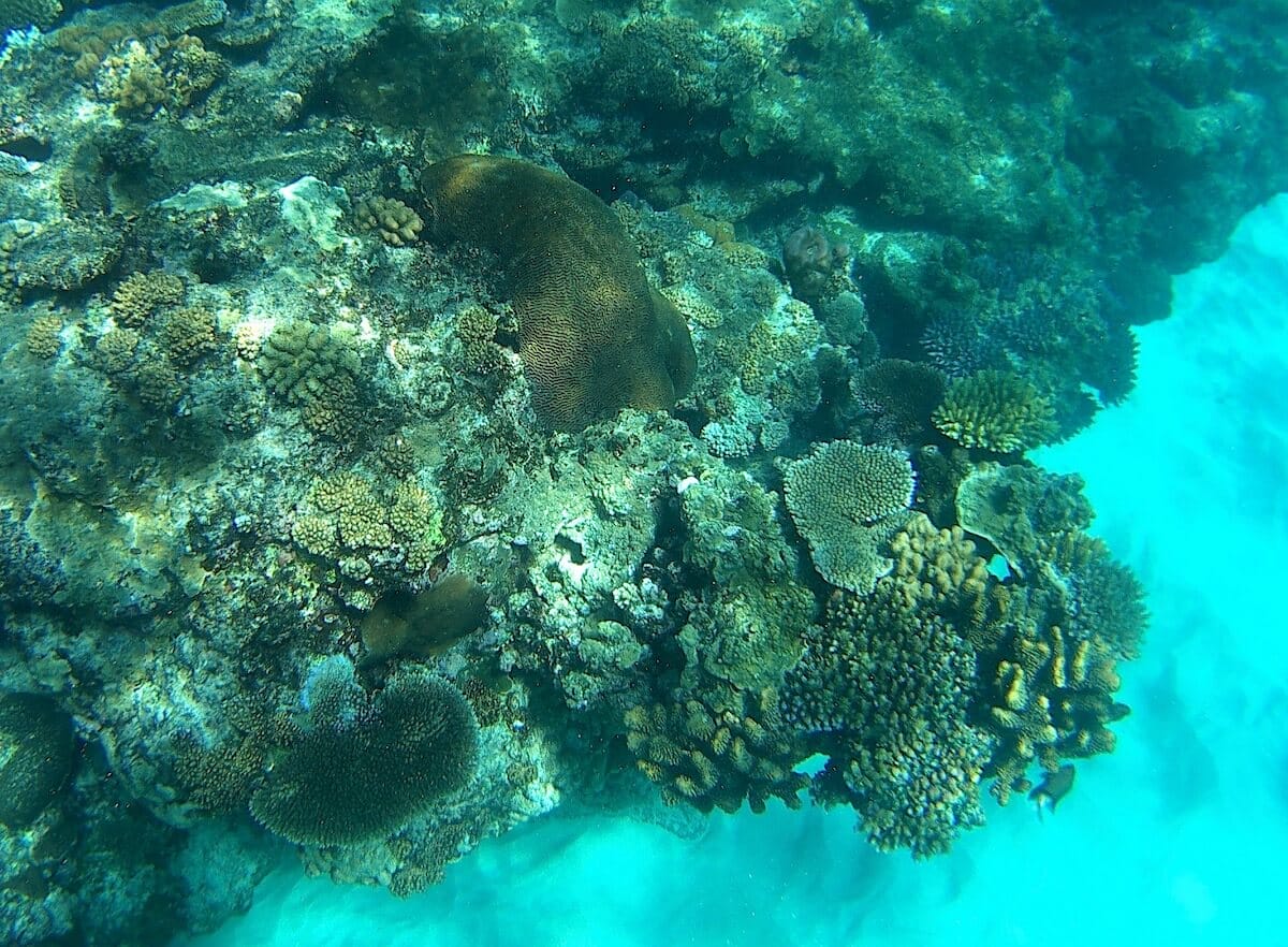 Big schools of fish swim around the corals stretching out in a place that seems to have been spared from the bleaching that is occurring elsewhere. You will never be tired to explore this reef as you will always find something that will keep you wanting to go back in the water.