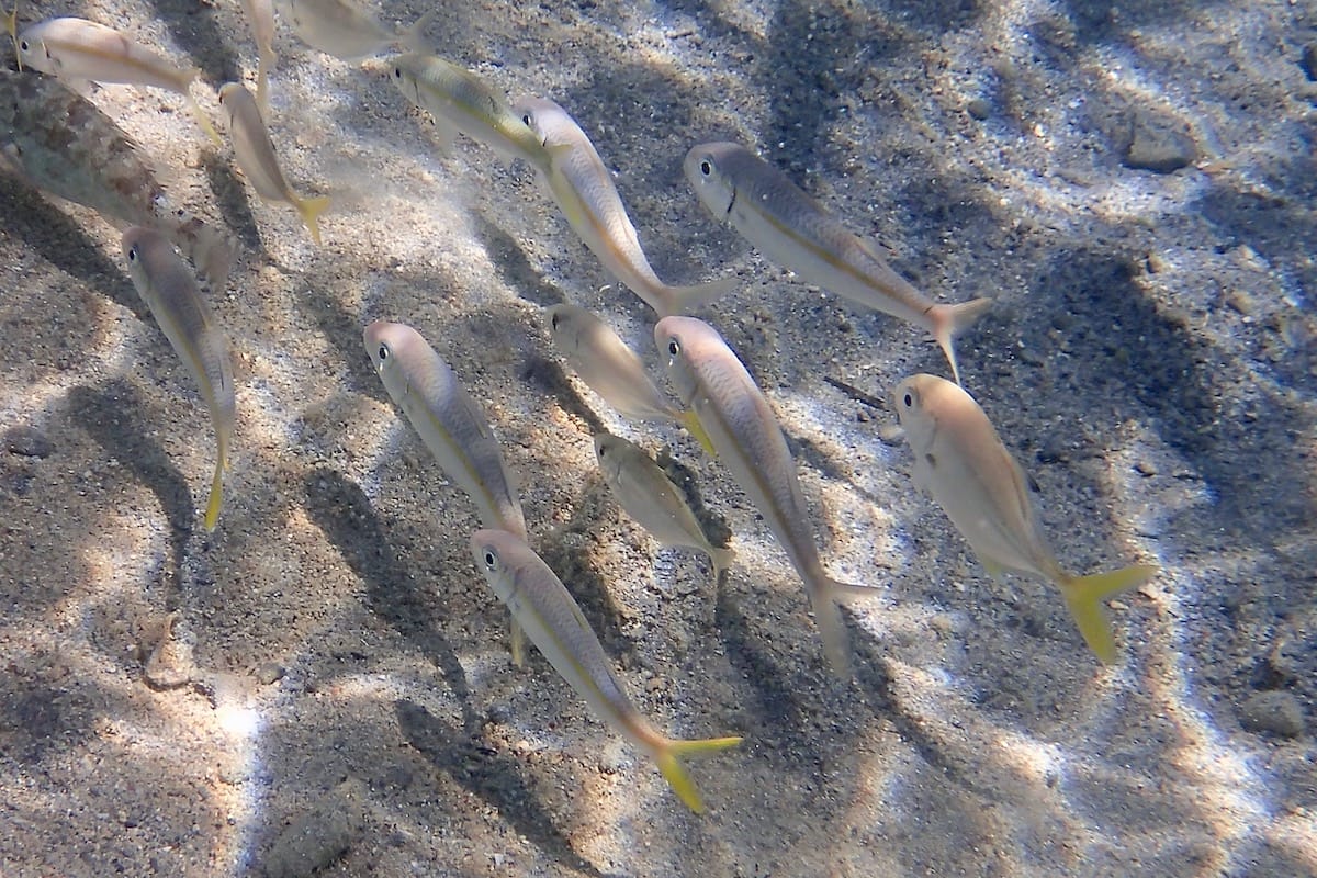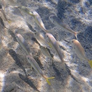 A few sea urchins inhabit the seabed, particularly in the seagrass, but they are not dangerous as long as you don’t put your foot on the seabed, as is the usual recommendation.