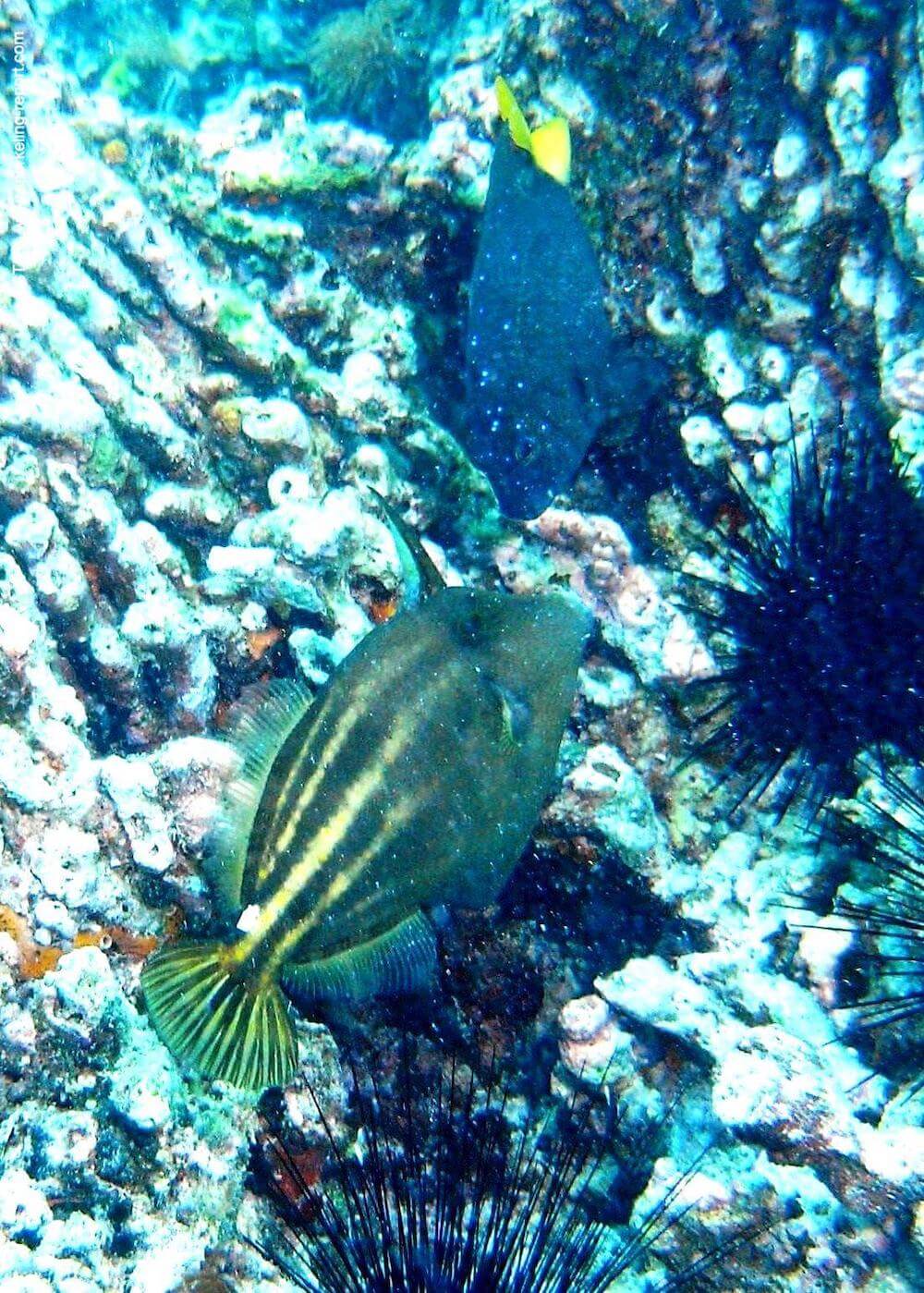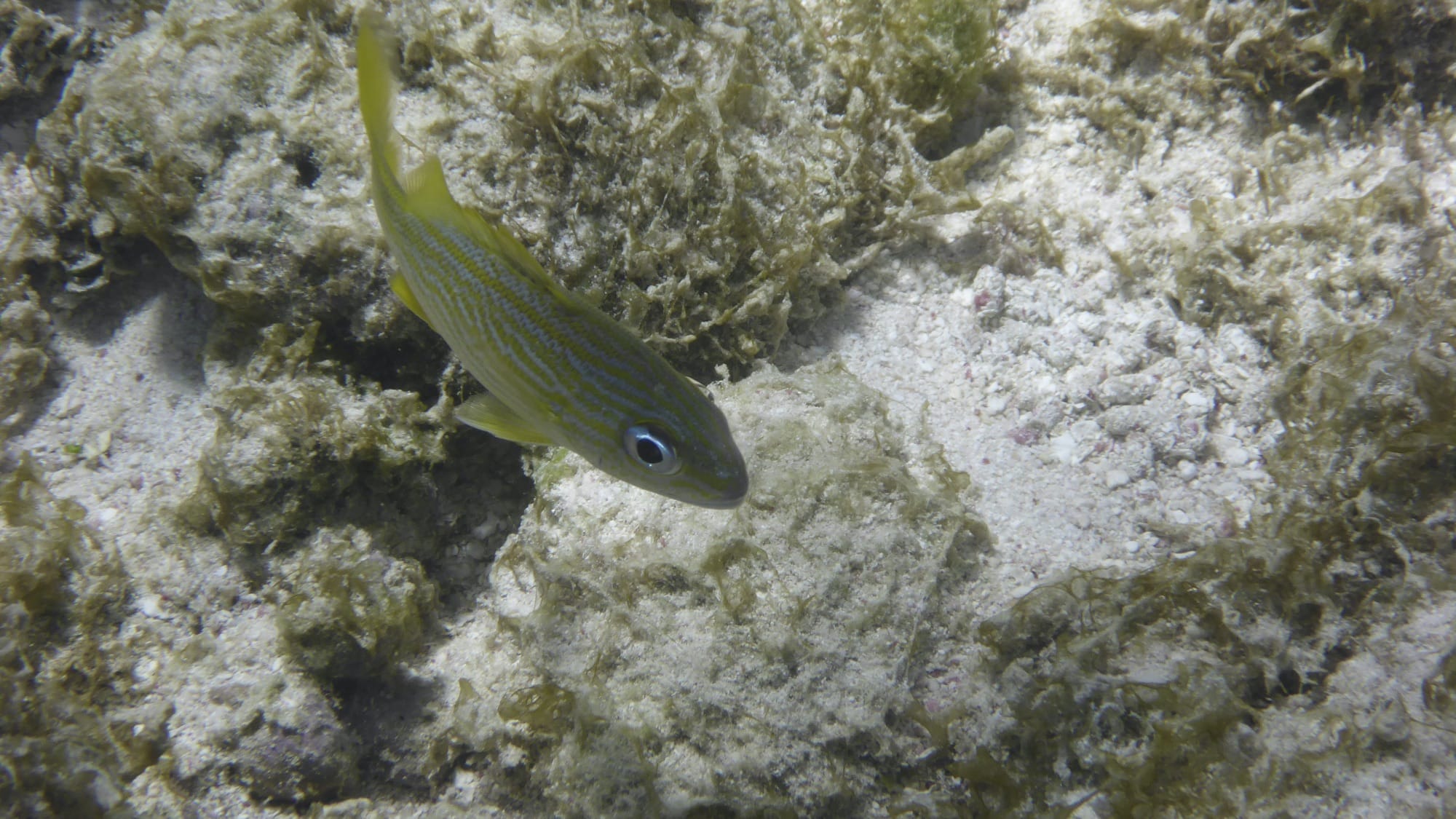 Despite this average quality seabed, beautiful diversity of fish is found around Palm Island: grunts, snappers, filefish, goatfish and horse-eye jack can be seen almost everywhere. The beautiful spotfin butterflyfish is also common to Palm Island, just like the French angelfish and the Caribbean trumpetfish. More than 100 species can be found at this spot. With a little luck, you might also come across a stingray, which take shelter in the calm waters of the island.
