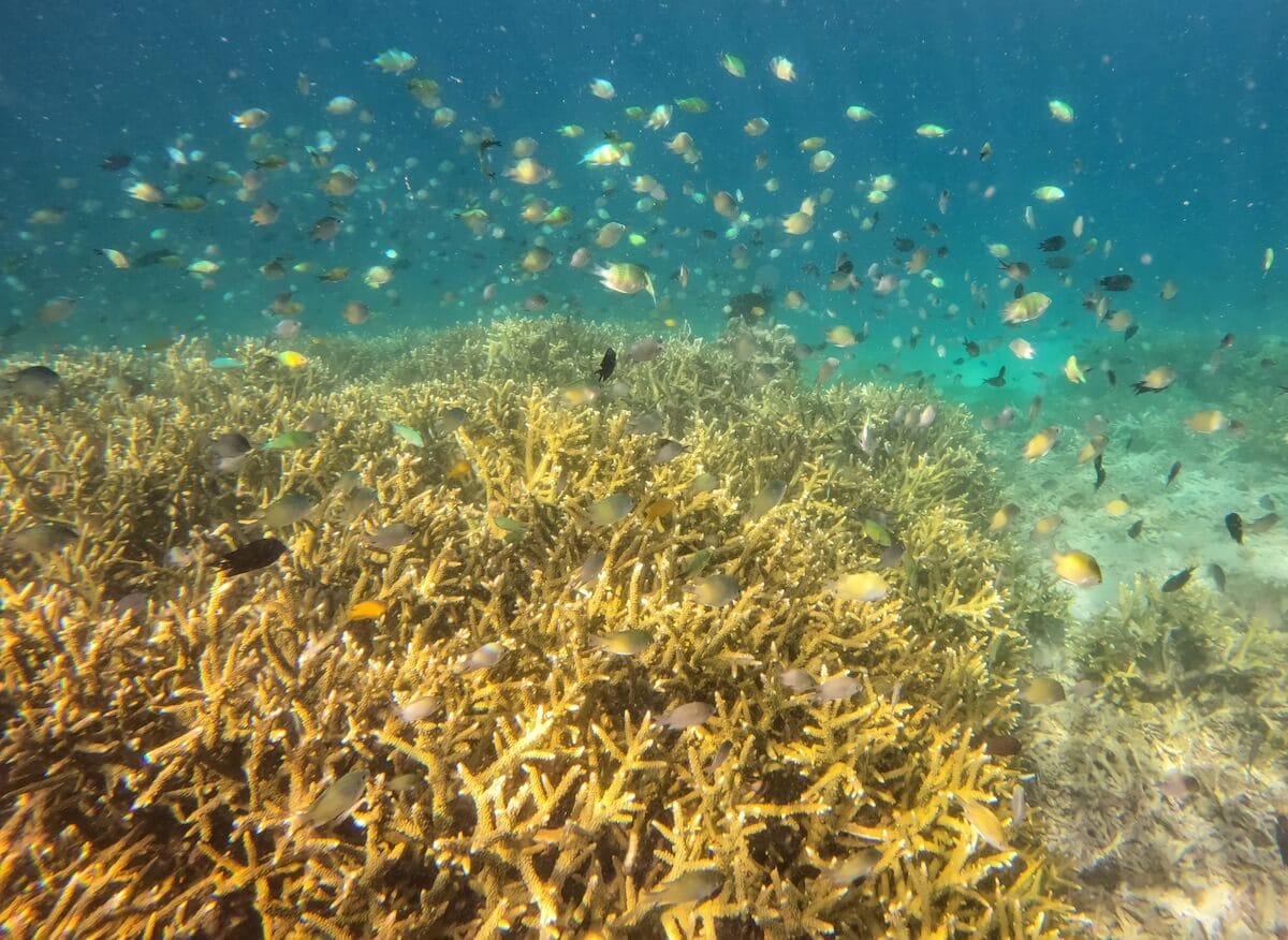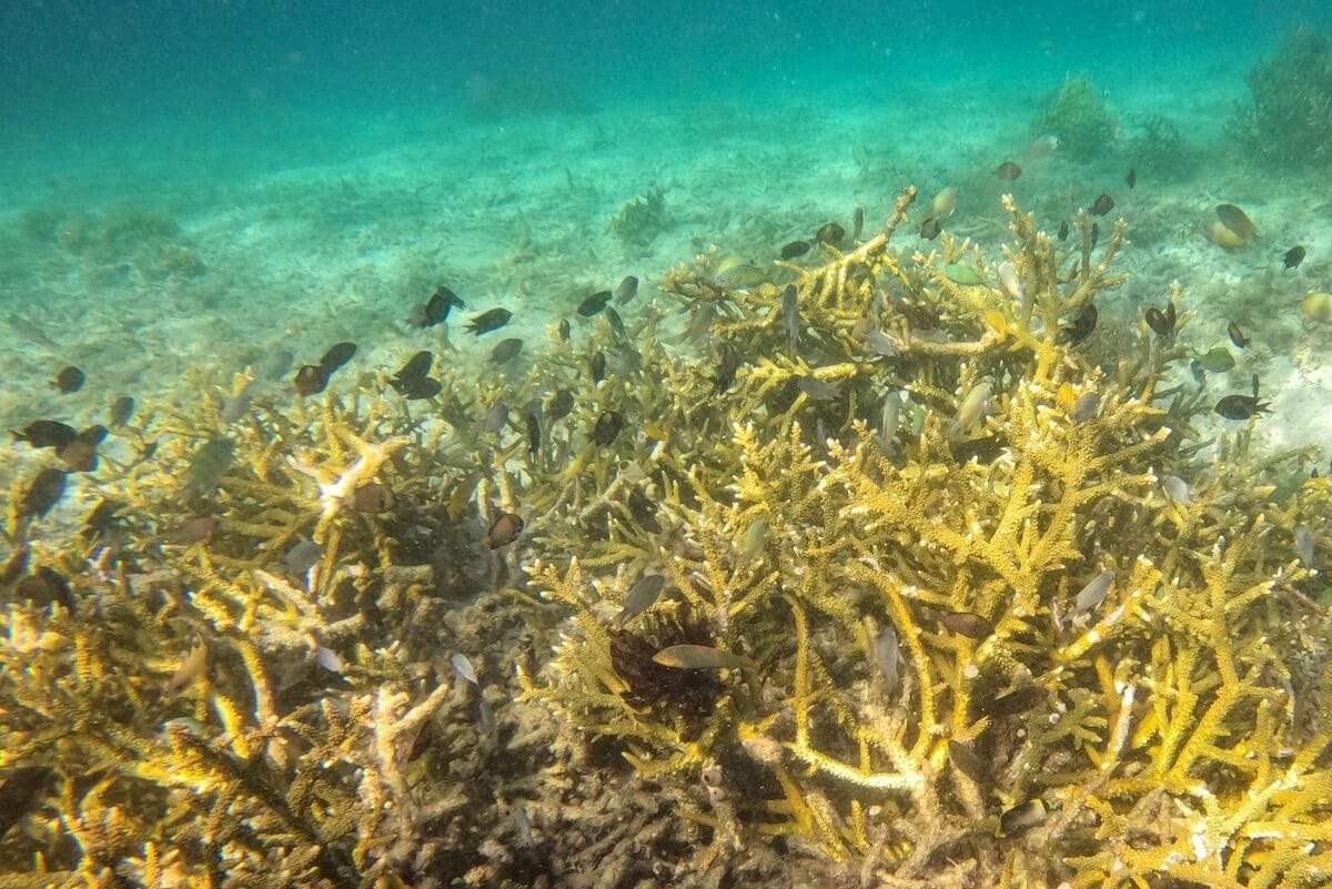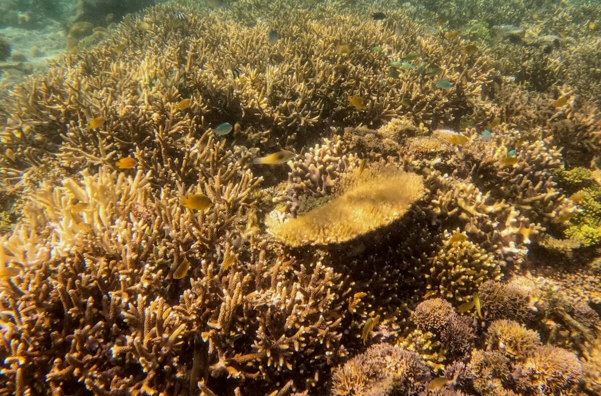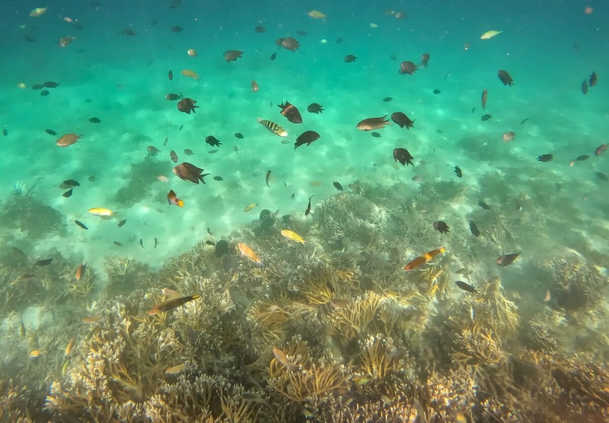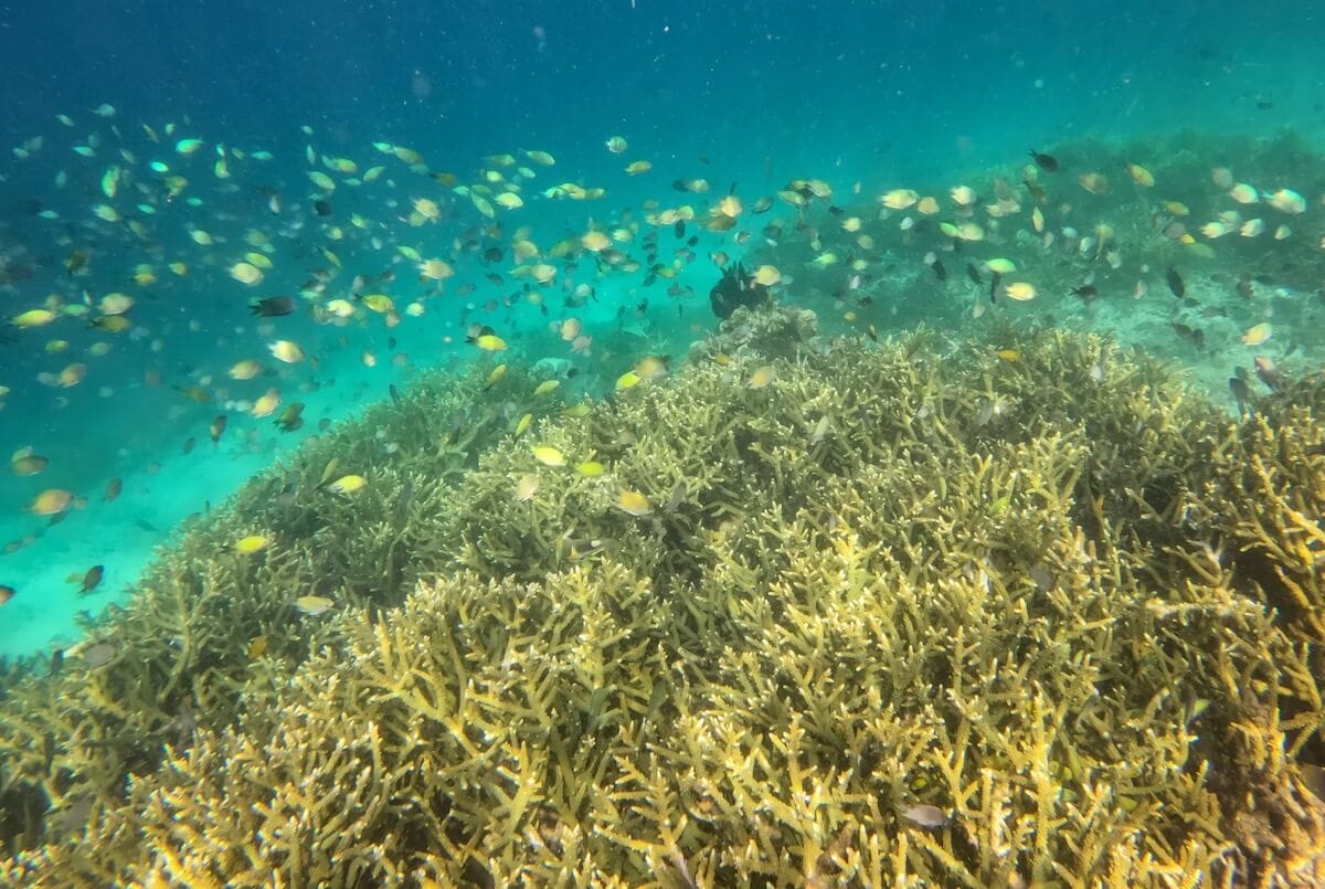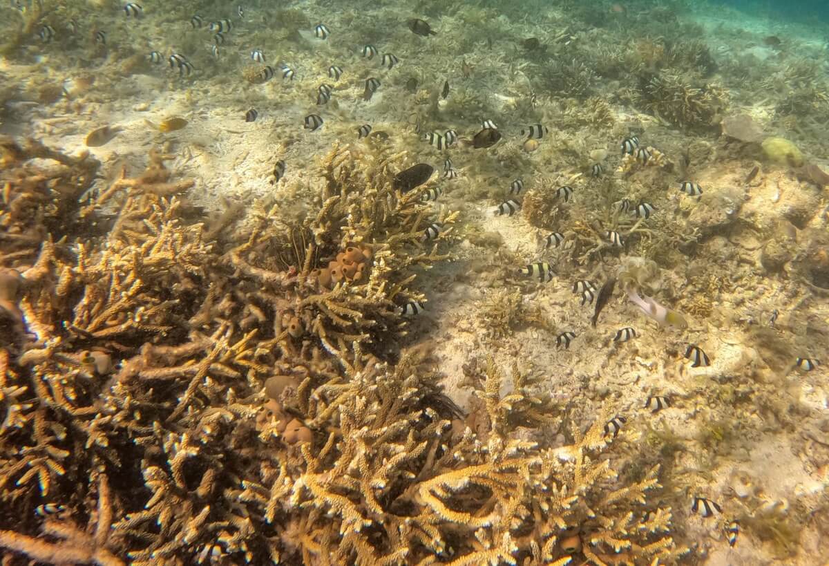 The reef is almost exclusively built out of staghorn corals which may not sound so beautiful. However, the interesting part is that the sea is calm, the hard corals are very healthy, and the fish is extremely abundant.