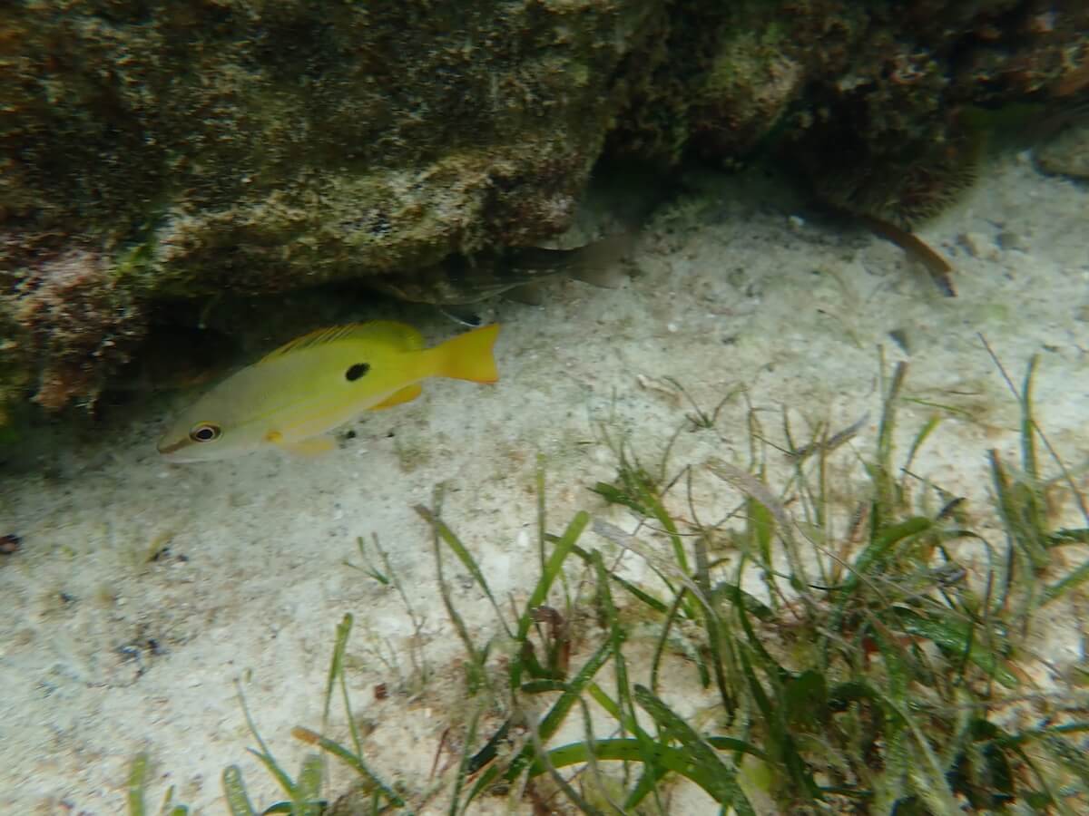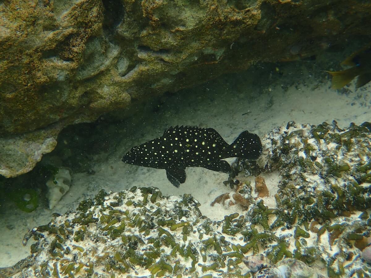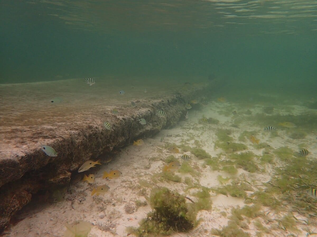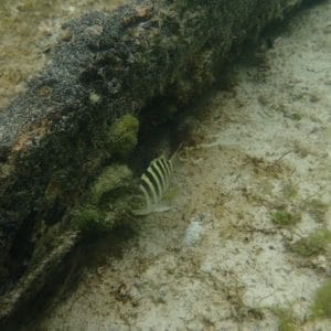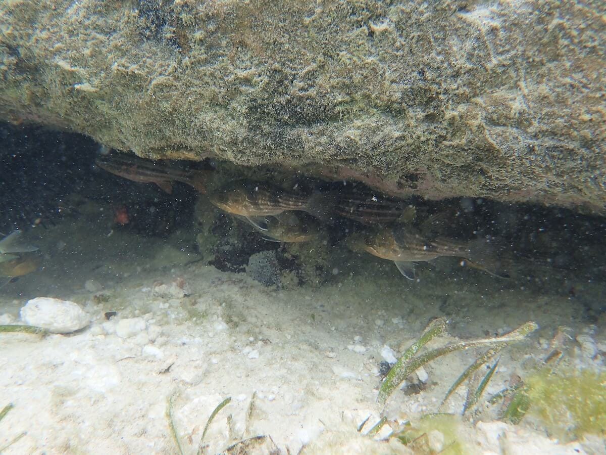 Damselfish, small groupers, snappers, six-lined soapfish, but also juvenile semicircle angelfish or small moray appreciate the hiding places offered by the concrete blocks.