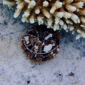 Hundreds of giant clams can be seen on the seabed. If you or your kids dream of seeing clownfish, you are in the right place. Dozens of sea anemones are attached to the reef, hosting two species of clownfish, the fire clownfish and Barrier reef anemonefish.