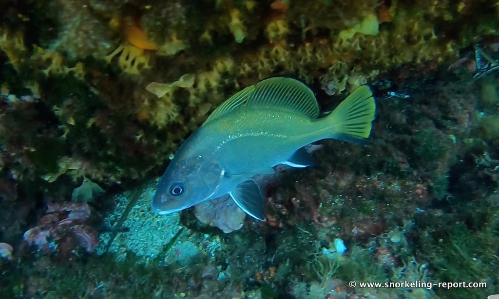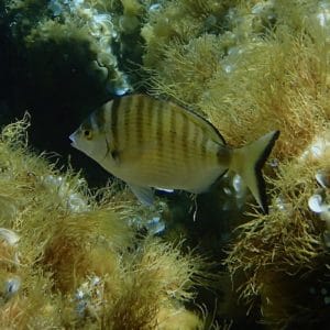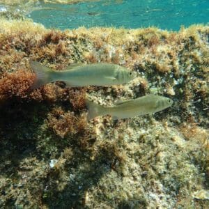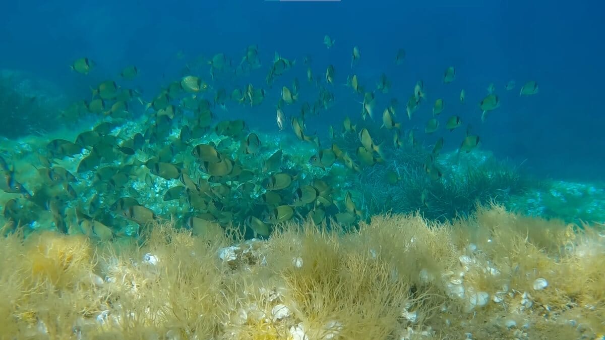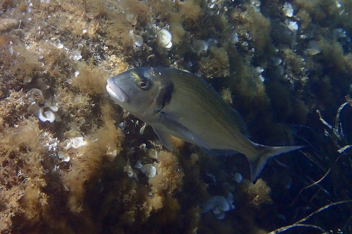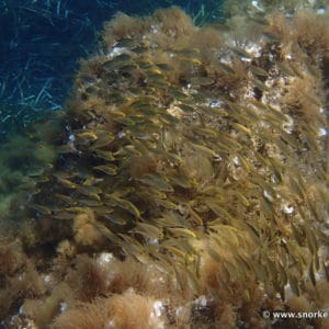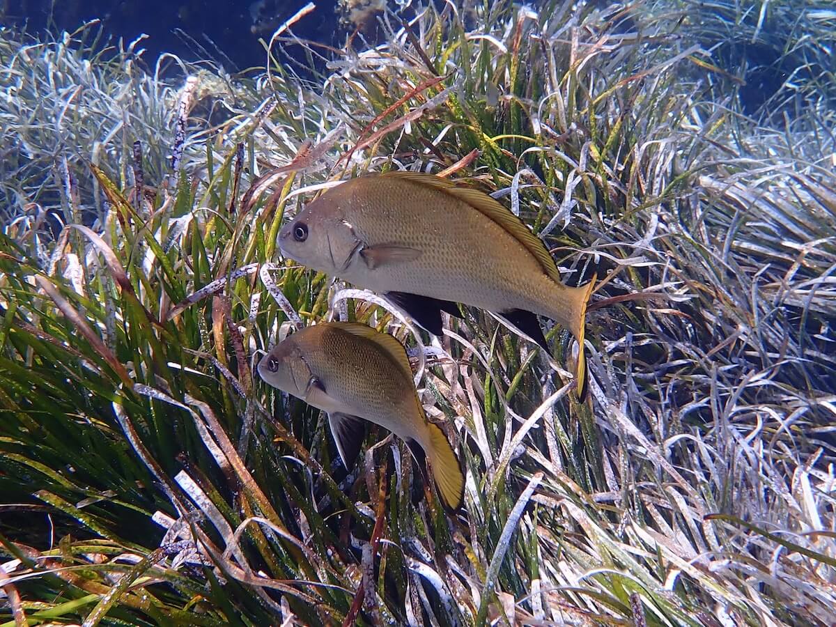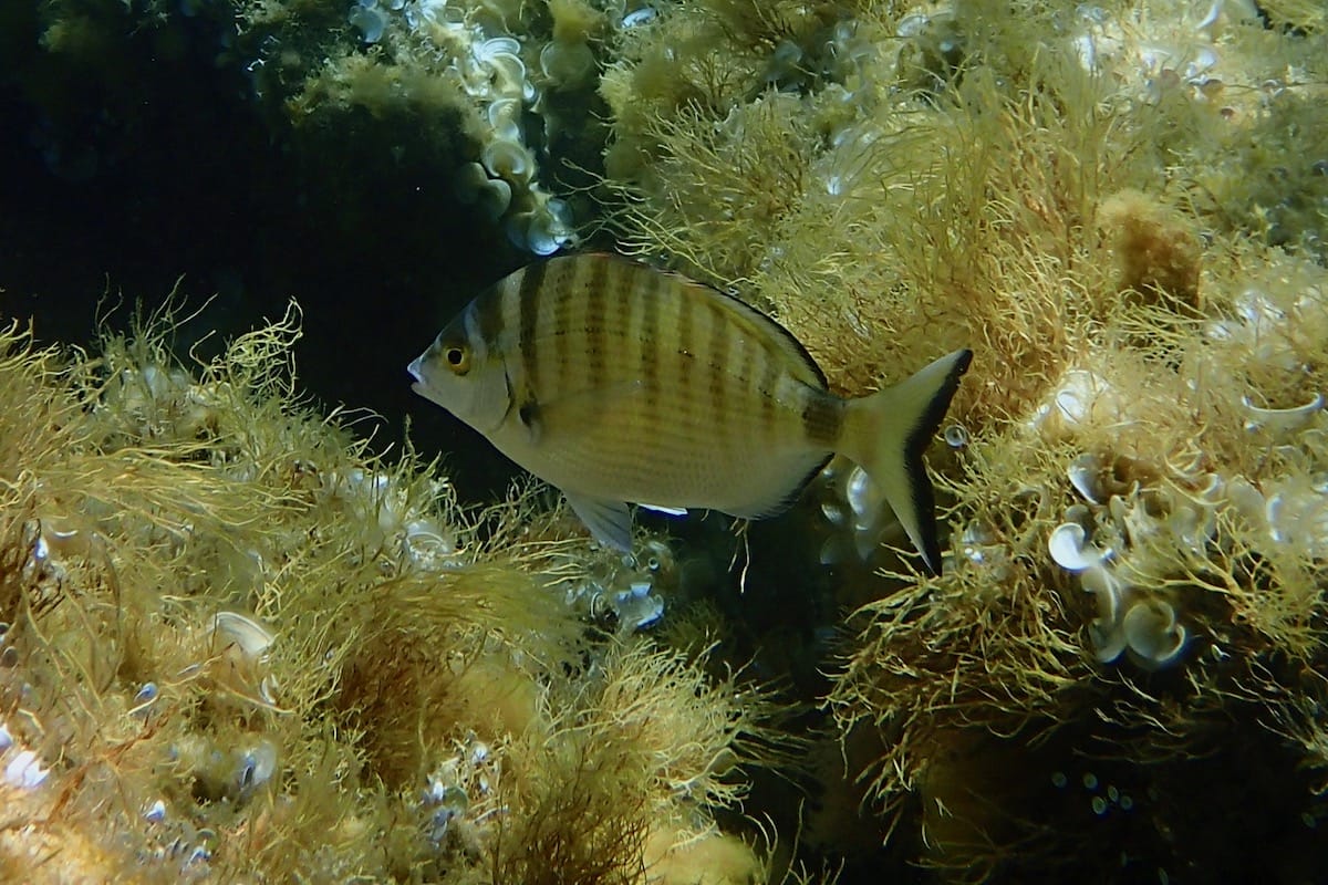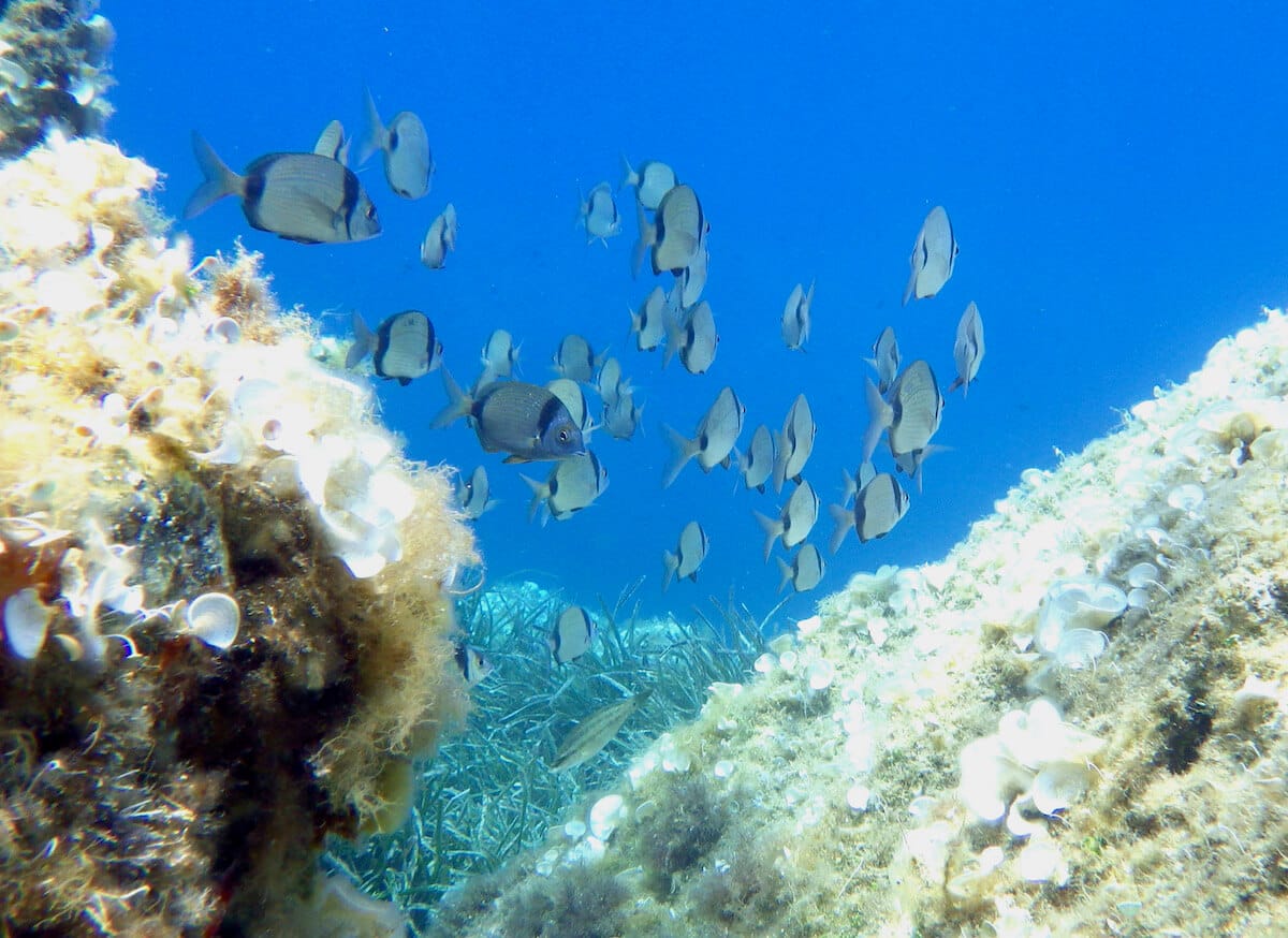 The most interesting environments are probably the Posidonia beds. Large shoals of salema porgy are found here, as well as gilt-head bream. There are several species of seabream and East Atlantic peacock wrasse.