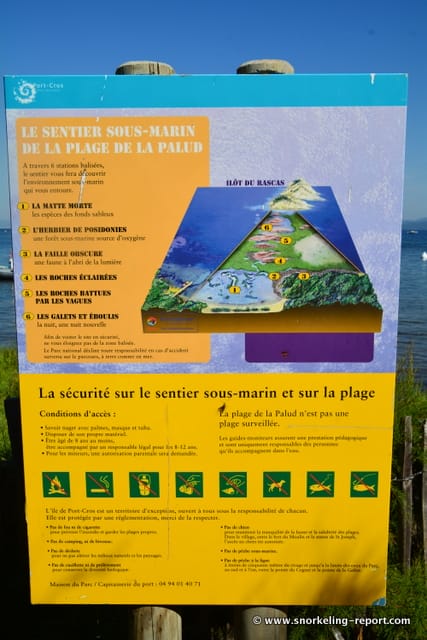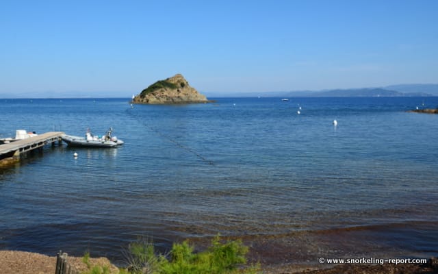 Once at the beach, you will have no trouble locating the snorkeling spot. It is marked out by two lines of buoys extending as far as the Rocher du Rascas (the small island you can see across from the beach). Get into the water wherever you wish inside the swimming area.