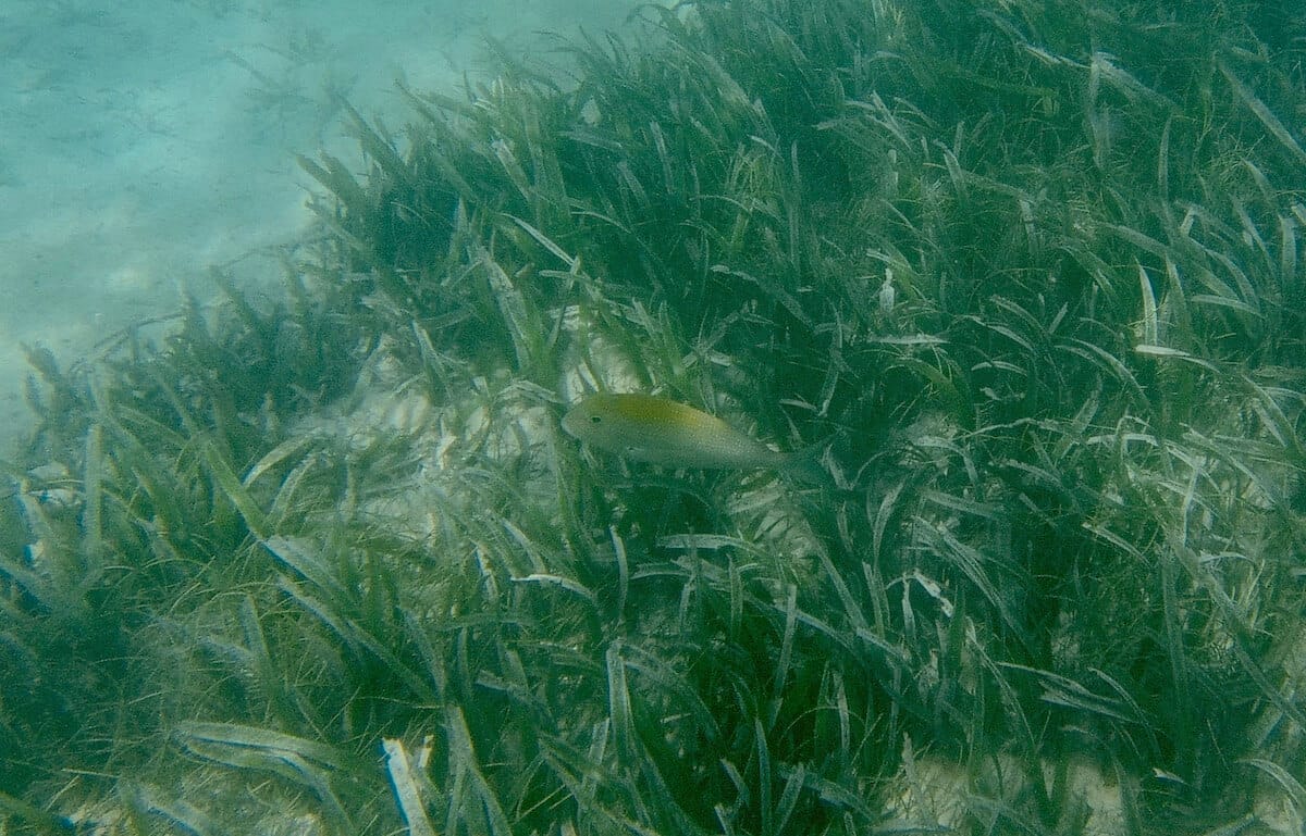 Among the dozens of fish that can easily be seen here are the sergeant major, the ocean surgeon, the blue tang, or the beau gregory. Porgy, snappers and spinefoot occasionally cross the seagrass beds.