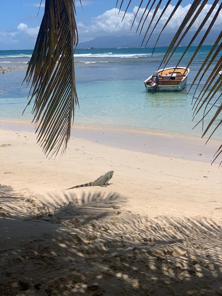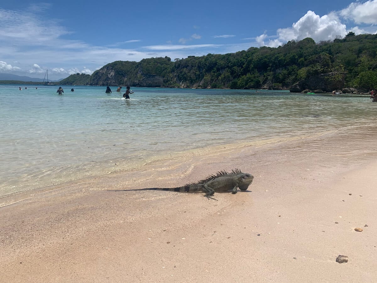 Petit-Havre Beach is known for its green iguanas. They are abundant on the beach and in the surrounding trees, especially in the morning, when the site is still uncrowded. Some are used to bathing in the shallow waters of the cove and it is therefore sometimes possible to observe them underwater.