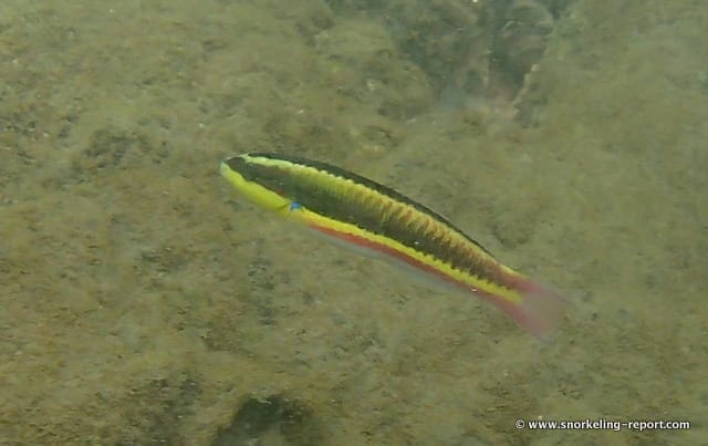 You will explore the area surrounding the rocks emerging from the water, close to the rocky point separating Playa Conchal from Playa Brasilito (see map above). As often, aquatic life gathers around rocks whereas the surrounding sandy seabed is of less interest.