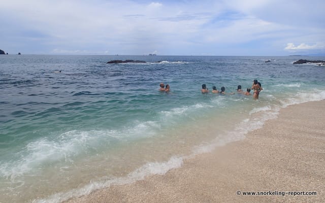 The snorkeling area starts at the very beginning of the beach when arriving from Brasilito. This shaded part of the beach is particularly liked by visitors. You will also be able to rent snorkeling gear here, if you didn’t bring your own. Enter the water facing the emerging rocks.