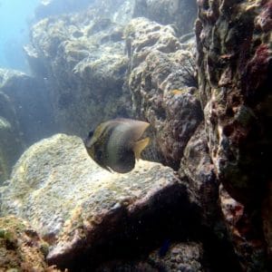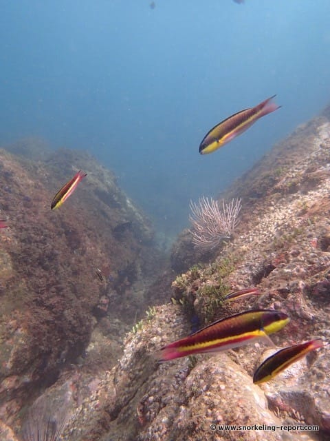A great diversity of fish can be spotted here, including the Cortez angelfish, which rarely leaves the rocky overhangs. Cortez rainbow wrasse, porcupinefish and Acapulco gregory are also easy to see here.