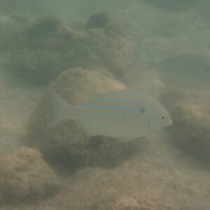 Even in the shallow areas near the beach, many fish can be spotted, including mullet, salema, and bullseye puffers.