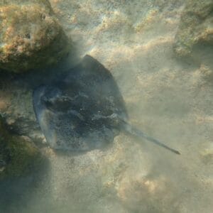 The large sandy area on the left allows for encounters with small stingrays of different species, busy feeding by digging in the sand.