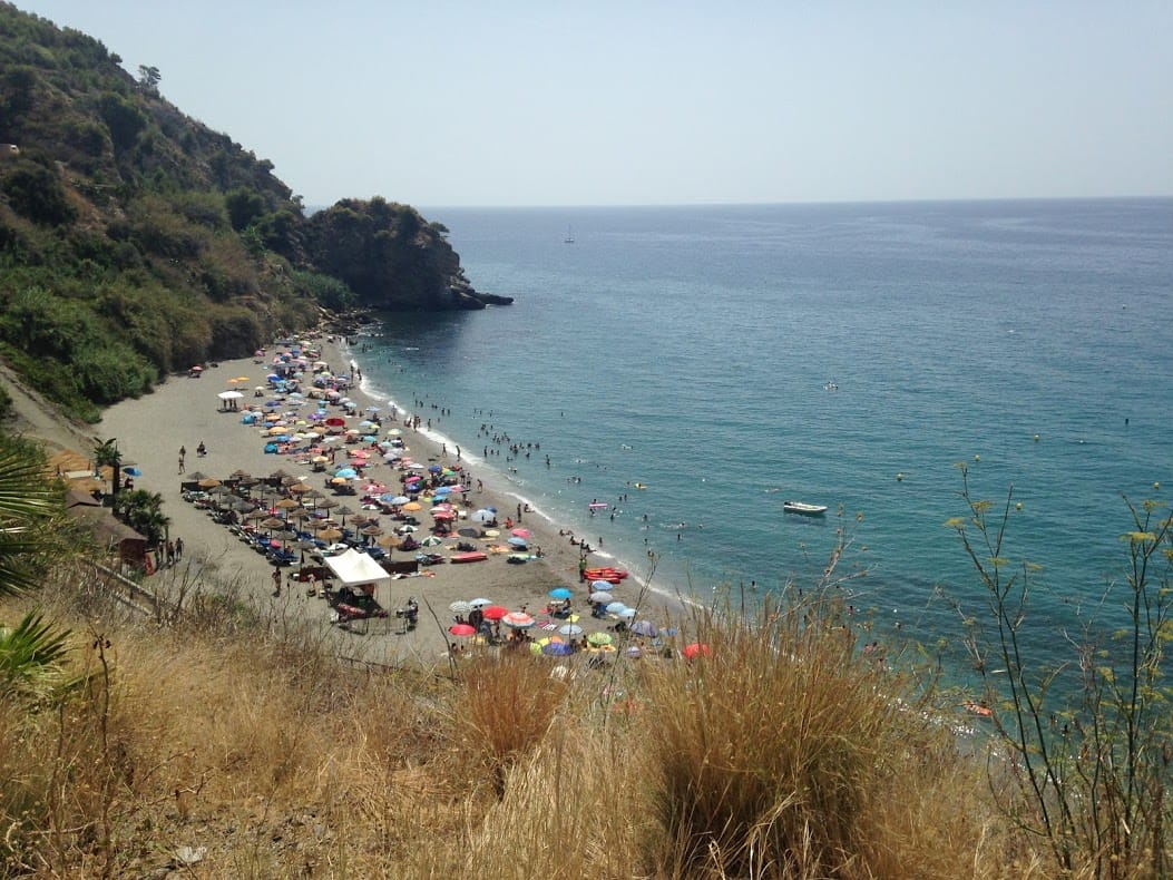 Playa de Maro is one of the best beaches in Andalusia. In this small bay, surrounded by grassy hills, water is crystal clear, and the rocky outcrops in either end of the beach are rich in marine life.