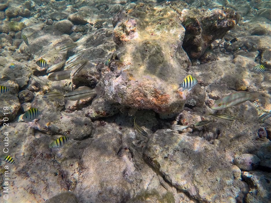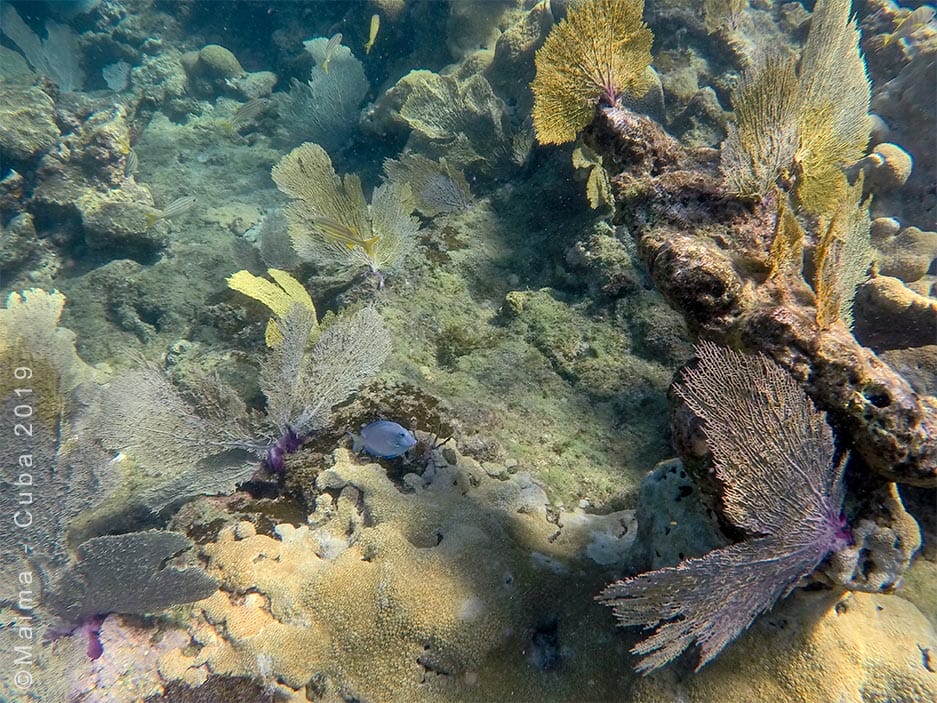 Playa Rancho Luna is a beautiful beach at the mouth of Cienfuegos Bay, on the southern coast of Cuba. This snorkeling spot is relatively little frequented by tourists, but valued by locals, who come here to enjoy their day with family or friends. The beach offers access to a rather preserved coral reef where one can admire, among elkhorn corals and gorgonians, a multitude of colorful fish.