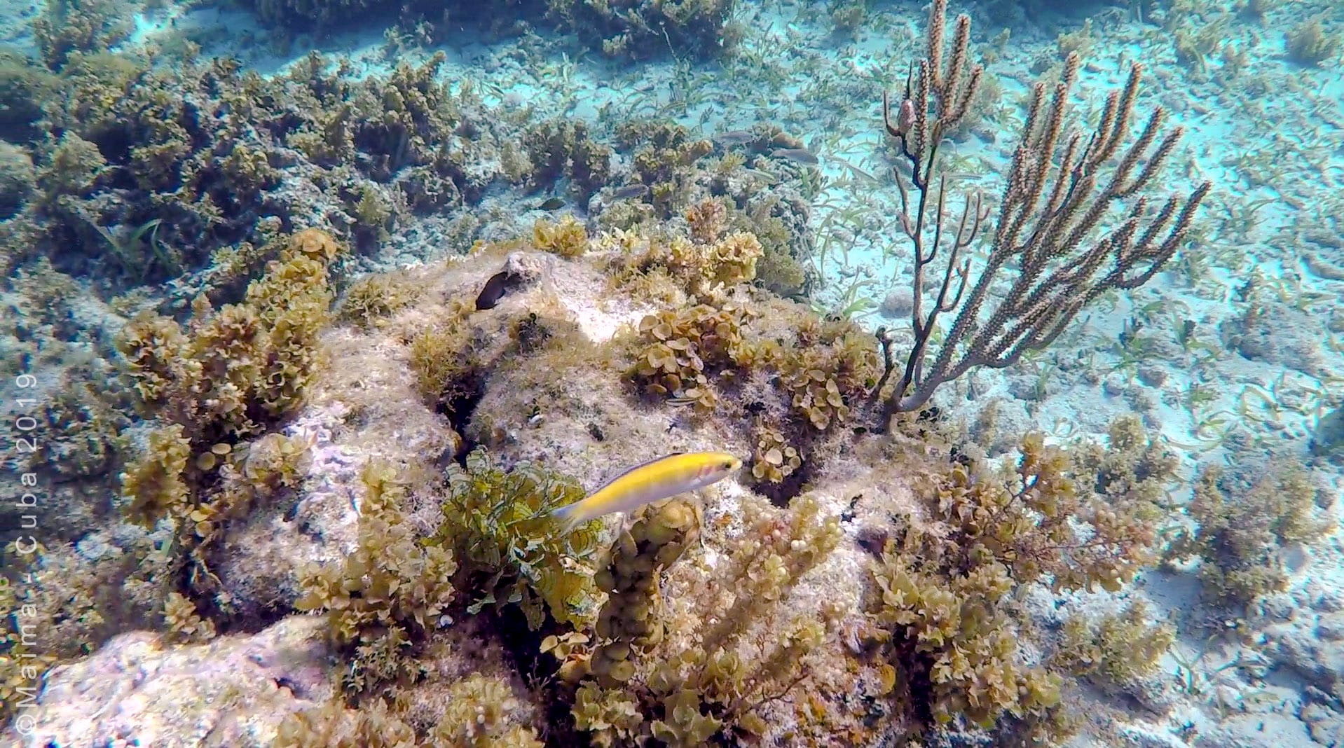 A very nice variety of fish typical of the Caribbean reefs can be seen in Playa Santa Lucia, particularly yellowtail snappers, bluehead and yellowhead wrasse, schools of bigeye trevally, as well as various species of butterflyfish.