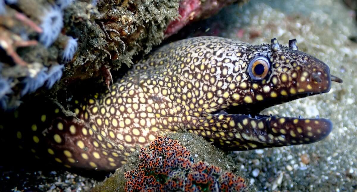 Here you can snorkel along the rocks that stretch for several hundred meters along the coast. The drop-offs, overhangs, and small coves are home to many fish species. You will probably encounter in this area damselfish, Cortez angelfish, giant hawkfish, rainbow wrasse, but also small jewel morays hidden in the holes in the rocks.