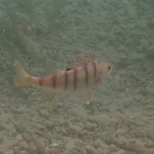 By skindiving 1 or 2m deep on the drop off, you may spot schools of roaches and perch. Sometimes, a big trench has been dug through the mud. The area located under the pontoons (↕2-4ft/0.5-1.5m) are also very lively, with many perch sheltering around the stilts.