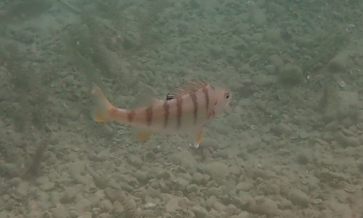 Here, the drop-off begins more than 10m from the shore, leaving a nice shallow area (↕2-6ft/0.5-2m) to explore along it. On the rocky bottoms, look for freshwater blennies and signal crayfish, which remain close to their hiding places. Perch and roach are easy to see in the shallows.