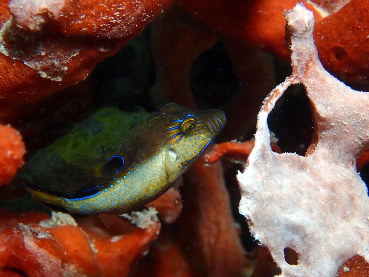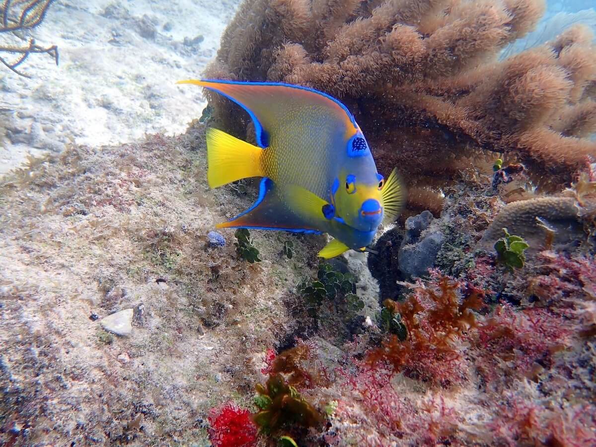In some places, you will find rocky areas covered with sponges, sea fans, and small corals, attracting interesting marine life like reef fish, shrimp and sea anemones.