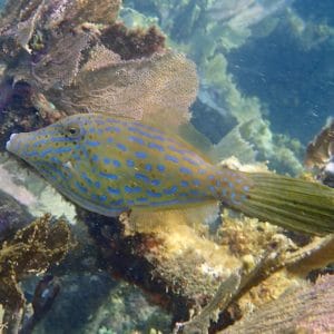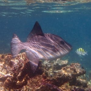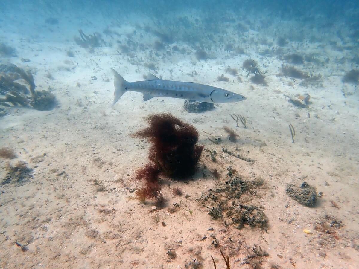 As you make your way along the coral beds, you are also likely to spot an Ocean triggerfish or an impressive Great barracuda, also common in the seagrass nearshore.