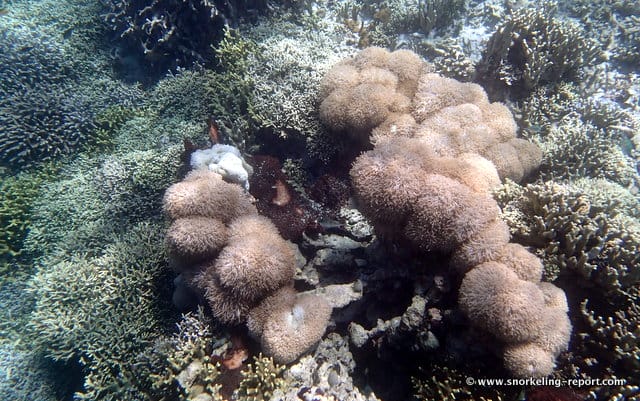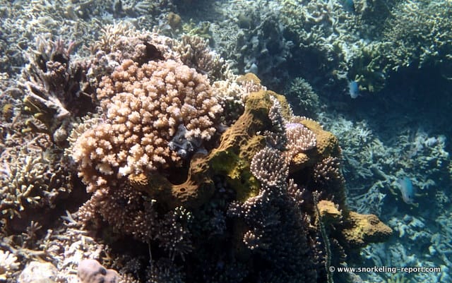 This spot is particularly rich in soft coral, especially the leather coral. Several species of angelfish, including the sixbar angelfish and the regal angelfish are easy to see. Try to find a sea anemone between the rocks: you are likely to see the ocellaris clownfish, better known to kids as “Nemo”.