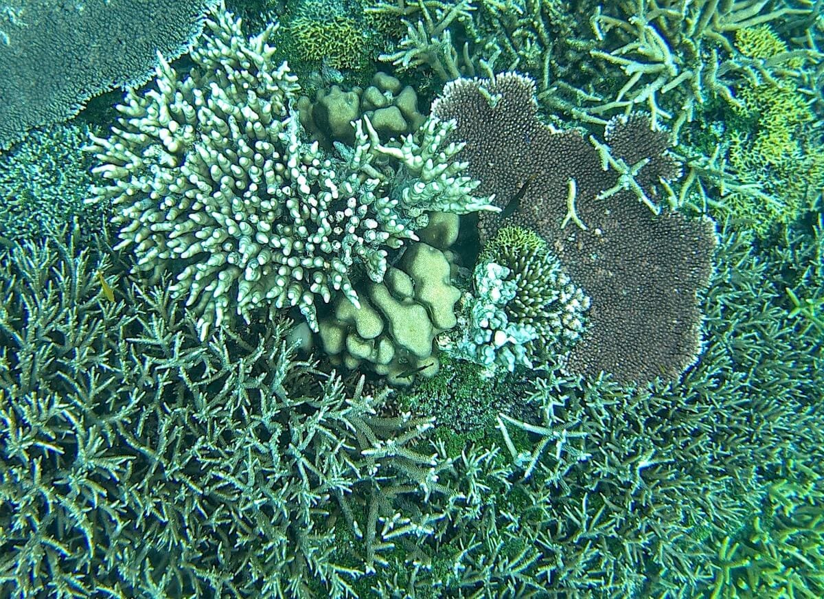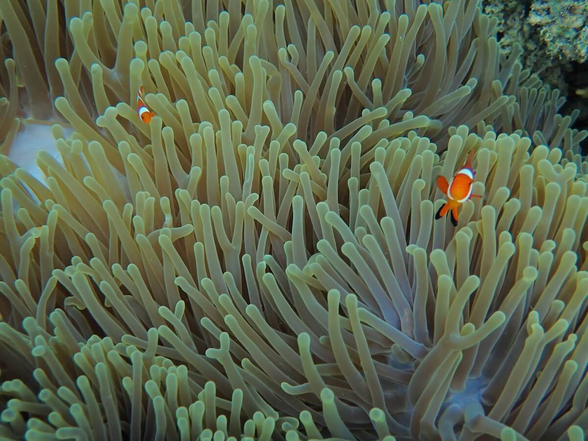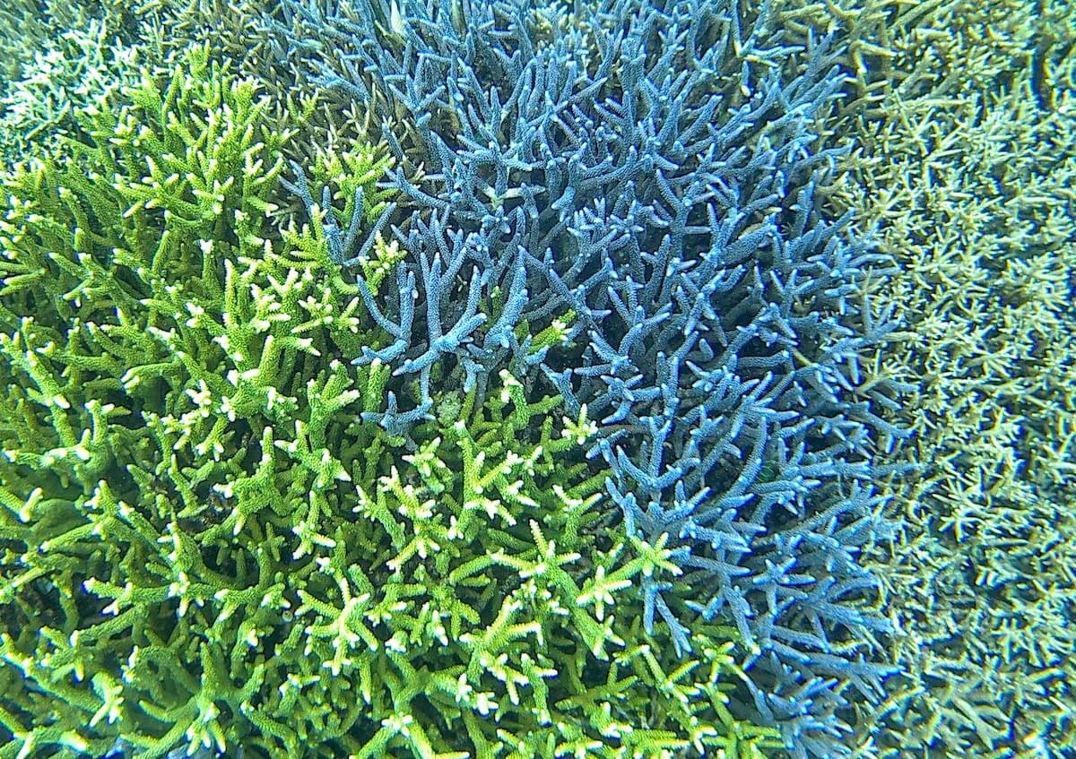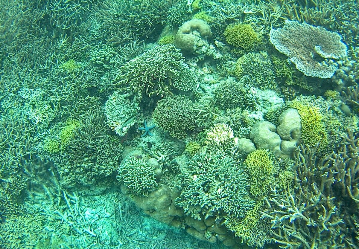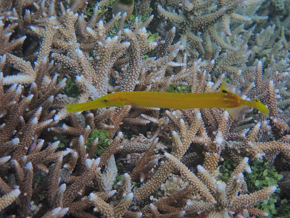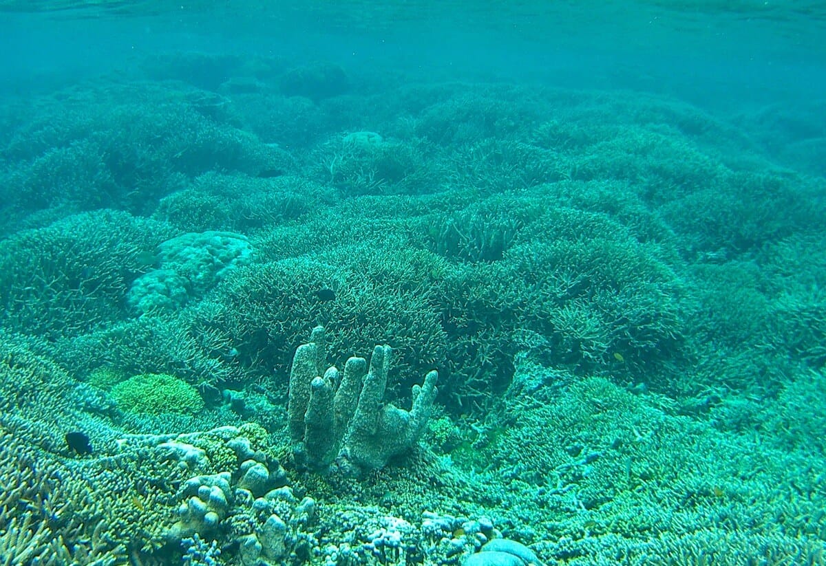 The island is entirely surrounded by a coral reef. Along the western and eastern sides of the island, this majestic reef is covered with hard corals and populated by an interesting amount of fish with the occasional sight of green turtles.