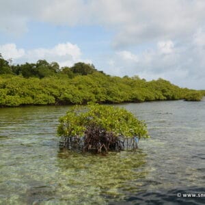 Many snorkeling tours in the Bocas del Toro archipelago take in a visit to this small restaurant situated at the southern tip of Isla Bastimentos, facing Cayo Coral. Around a few buildings on stilts, at the edge of the mangrove, you can see, in less than 3 feet of water, starfish, coral, and many species of fish.