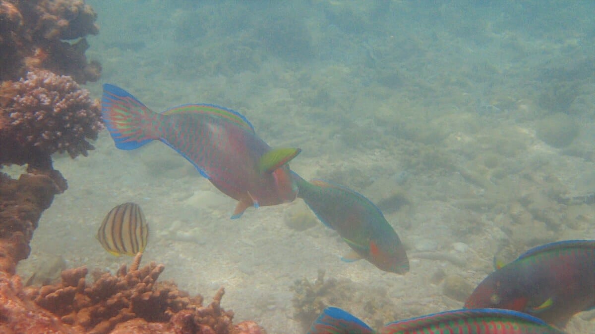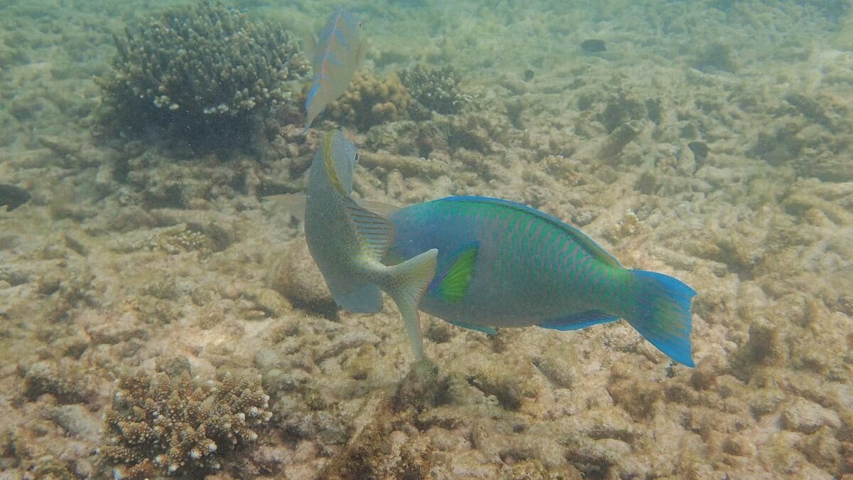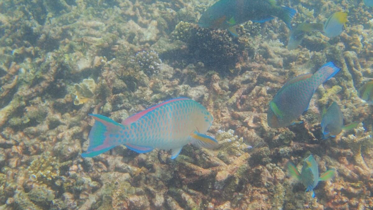 During your snorkeling, you may spot numerous fish species, including the moon wrasse, the bright yellow Hong Kong butterflyfish, several species of parrotfish and rabbitfish, and the colorful red-breasted wrasse.