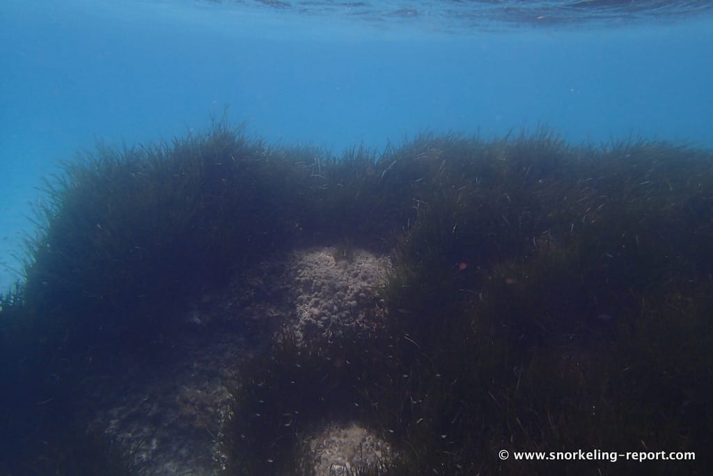 Huge blocks of polished granite are scattered on the seabed, alternating with sandy areas and Posidonia meadows (↕1,5-3m). Sea urchins and hermit crabs can often be seen on the rocks just underneath the water surface.