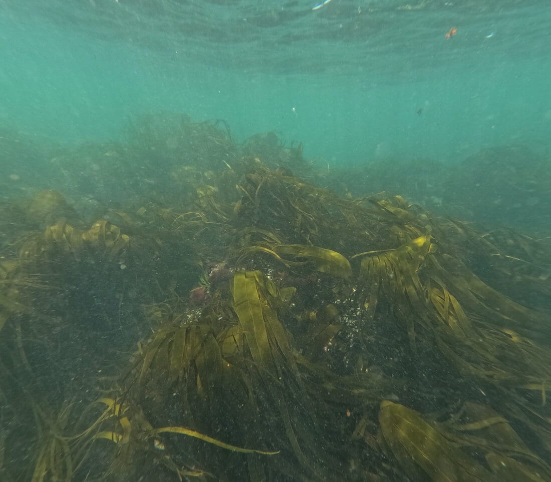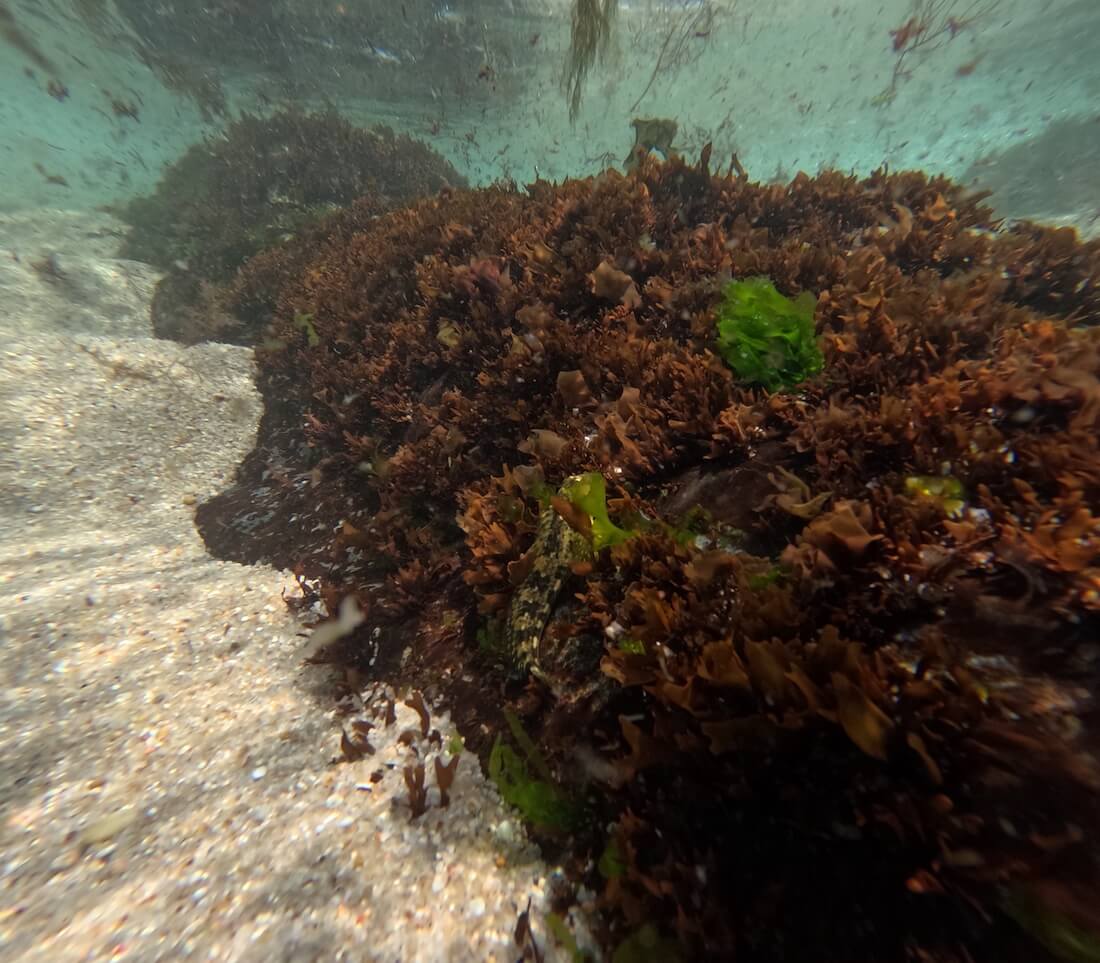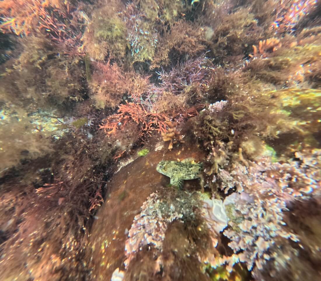 Moving away from the shore, you’ll reach deeper rocky areas on which kelp forests have developed (↕6-12 feet/2-4 meters). These create a pretty underwater landscape in which numerous gobies live, as well as a few sea stars.
