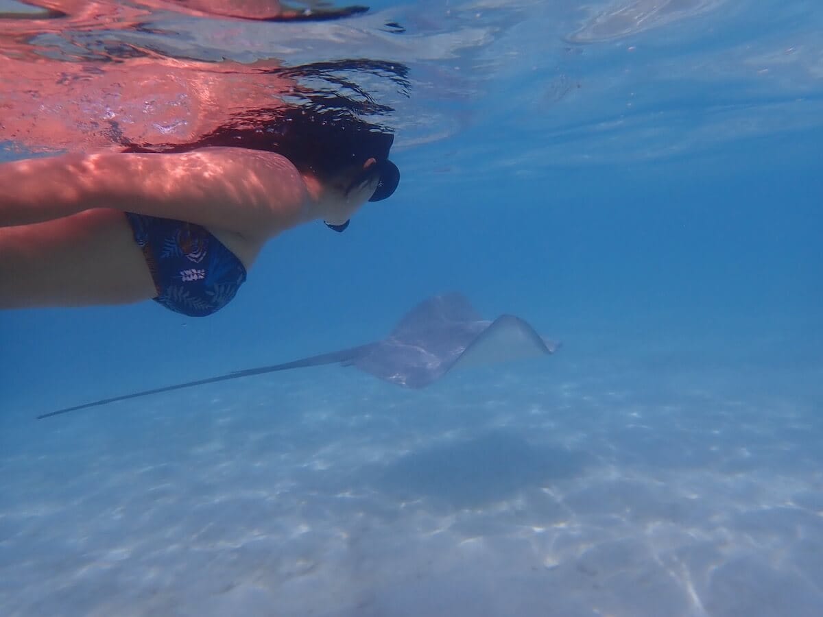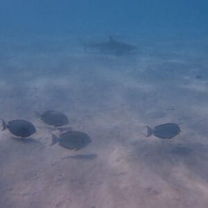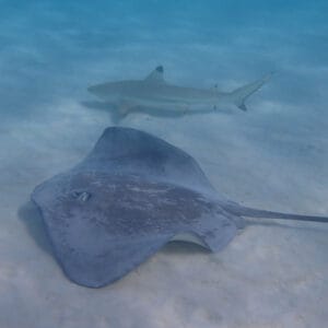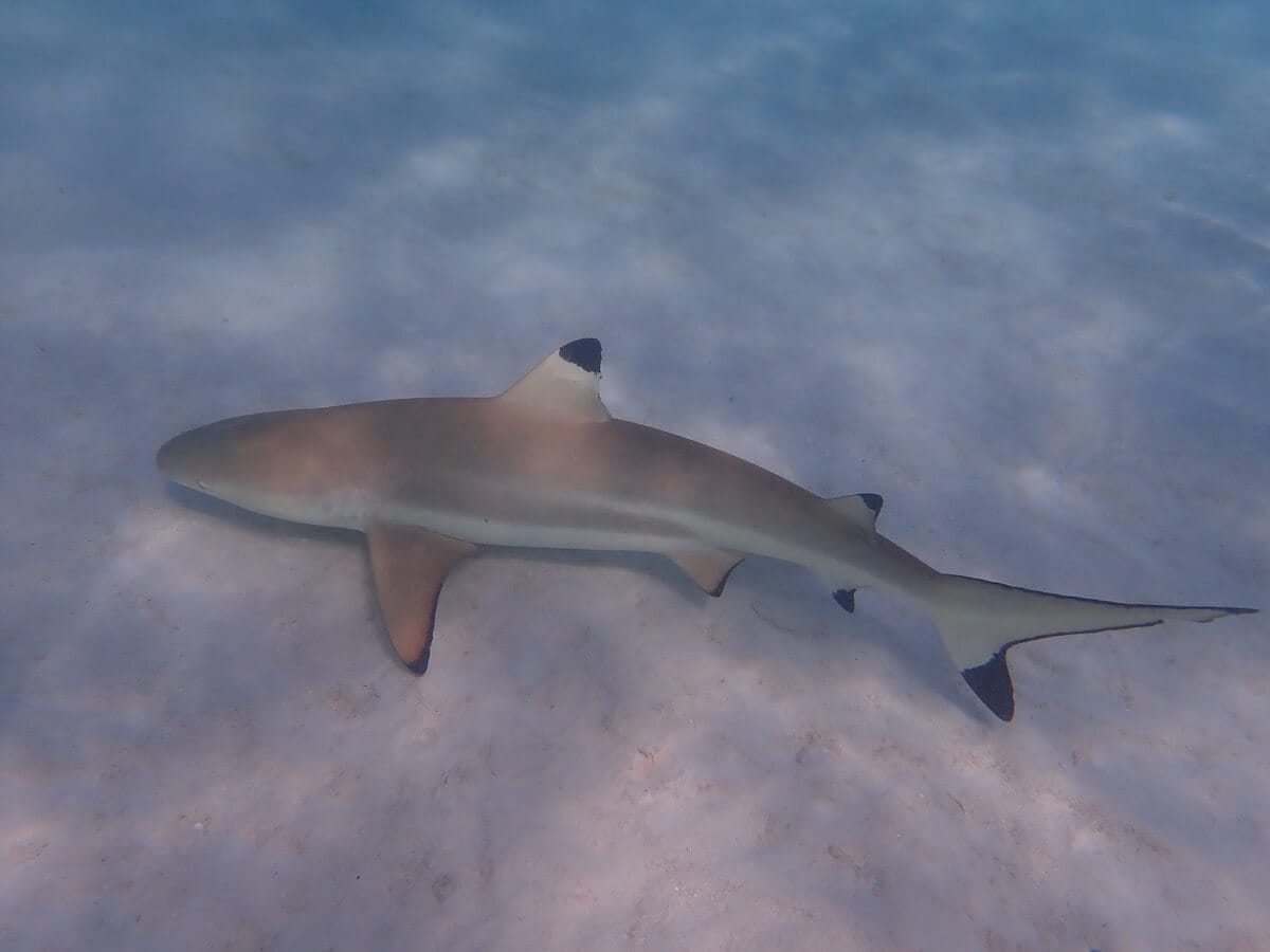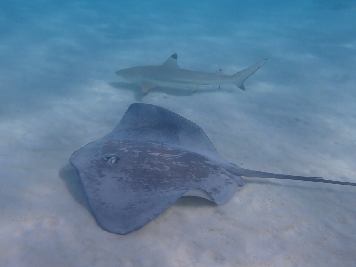 As sharks and rays tend to swim away if you try to follow them, we recommend you stay still, and they will approach you by themselves. Around 20 sharks can be present at the same time around the sandbank, while stingrays are less numerous (around 5 individuals).