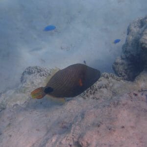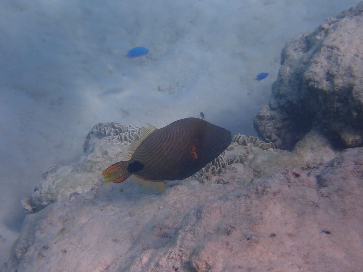 Larger creatures, including bluefin trevally, yellowmargin triggerfish and green sea turtles also visit the area. Sea turtles usually only quickly cross the sandbank: if you want to spot them, head to nearby Tiahura Beach, where they abound in the channel.