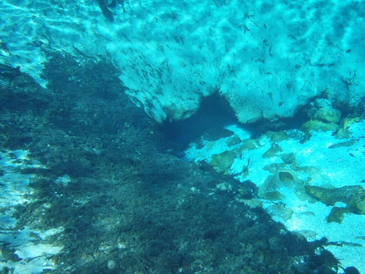 The pool bottom is mostly sandy, interspersed with limestone, roots and algae. Several species of freshwater and saltwater fish can be seen here, such as mullet, sunfish, and shoals of hundreds of huge striped bass. Freshwater turtles also live in the pool, generally found close to the shore.