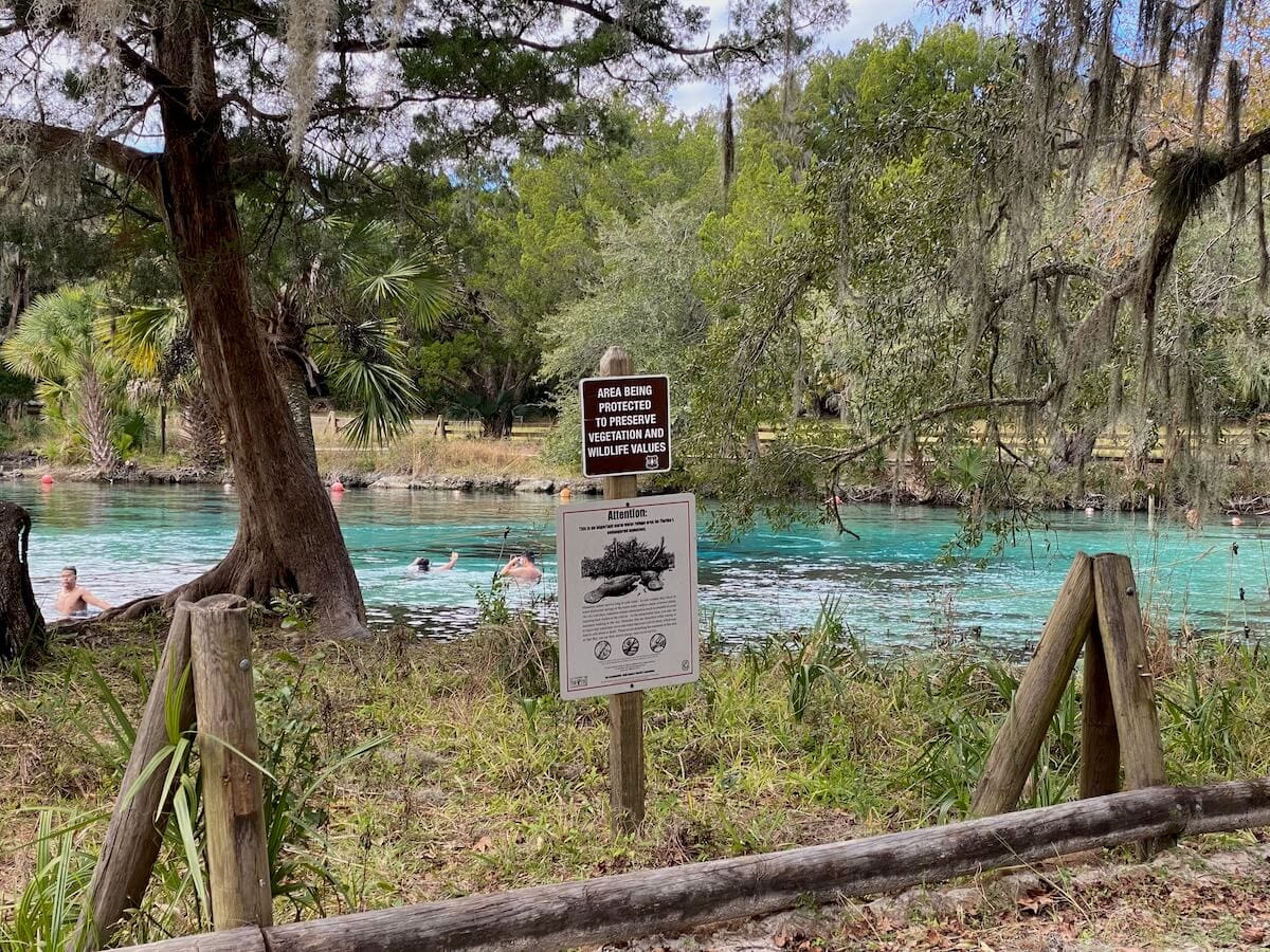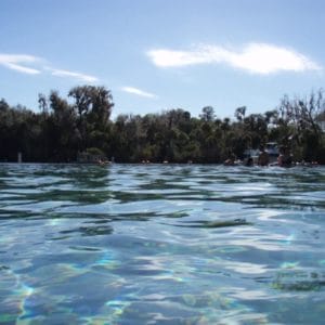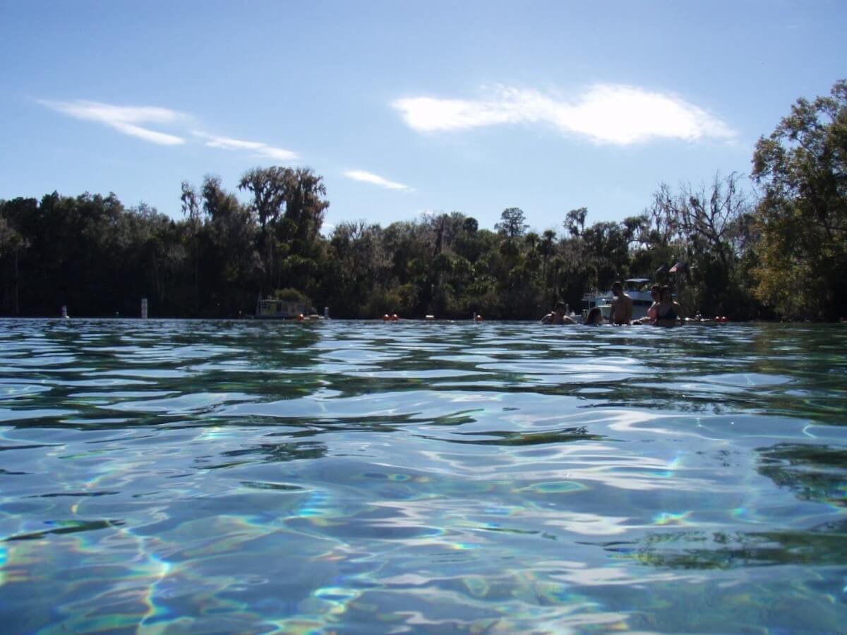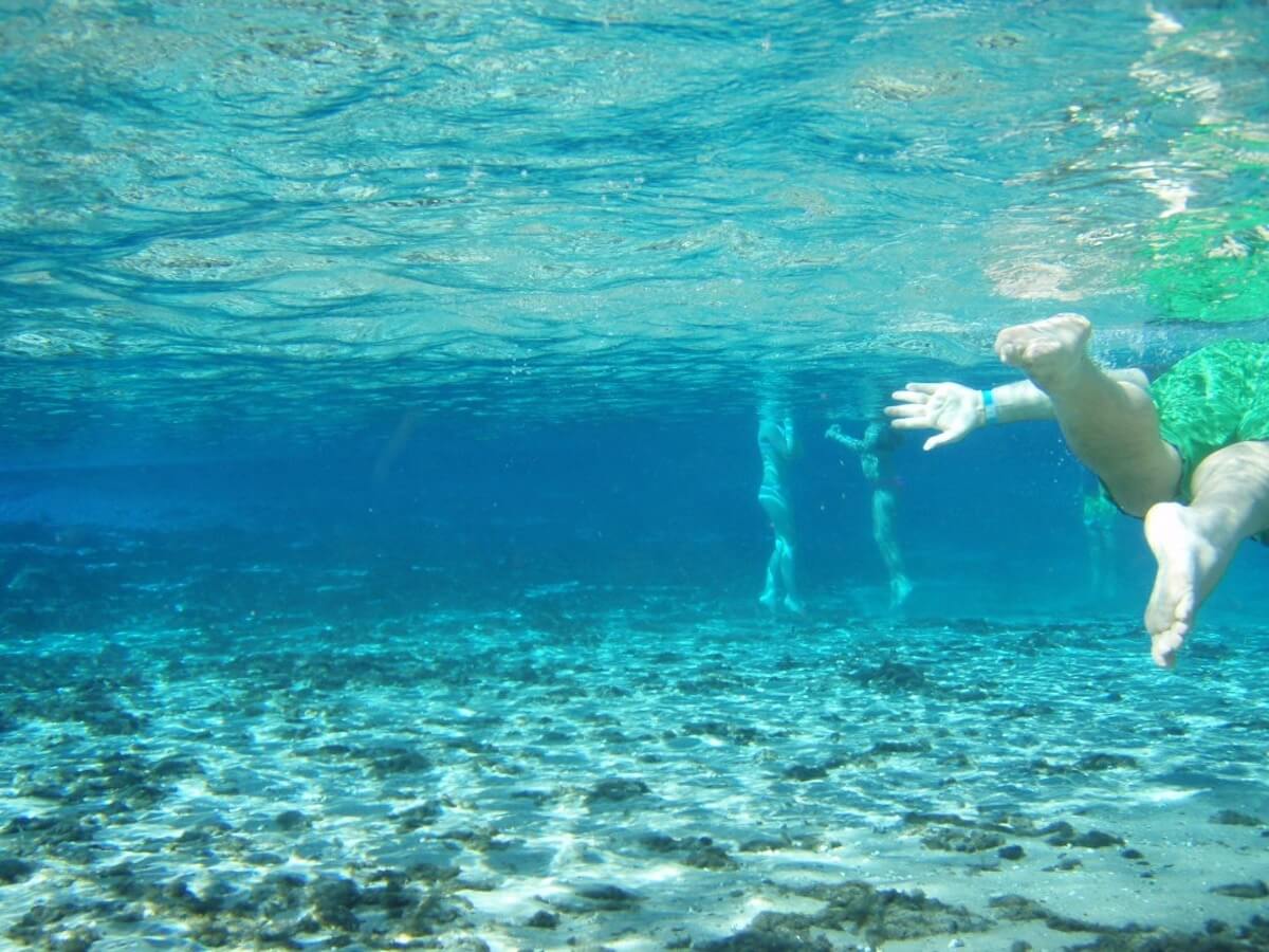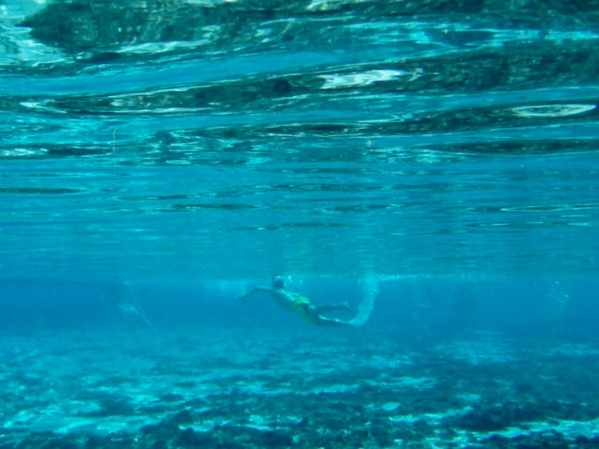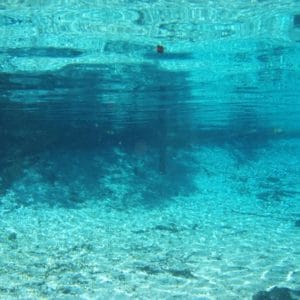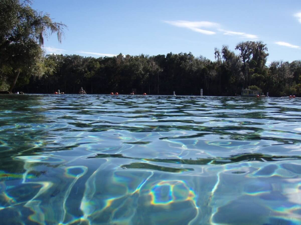 You can snorkel the whole spring pool, which is about 60m wide. On the spring run side, it is delimited by a line of buoys. The swimming area is safe, as it doesn’t allow boats. Most of the spring pool is only 2 to 4ft deep, the deepest area being around the outflow holes, about 18ft deep.