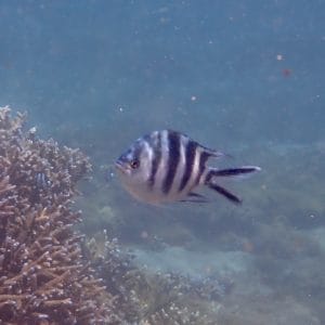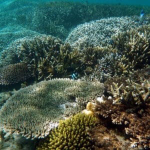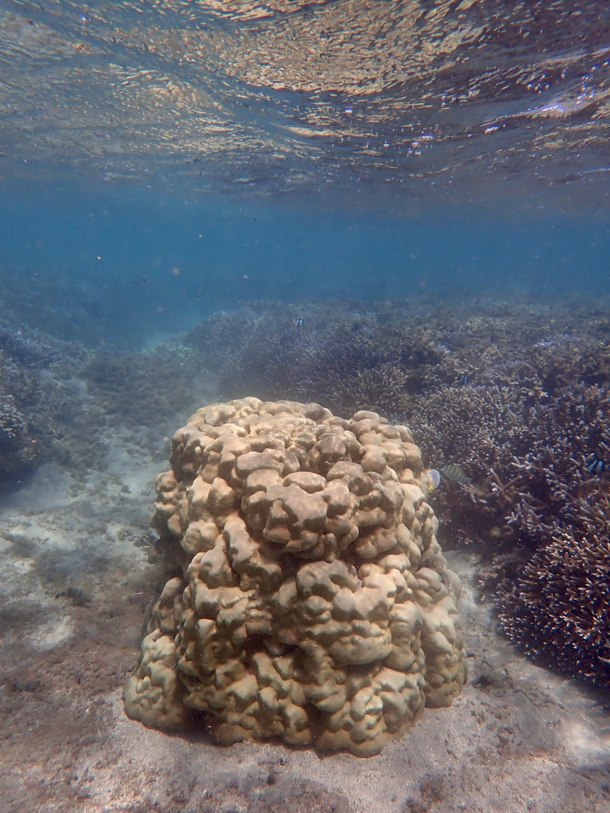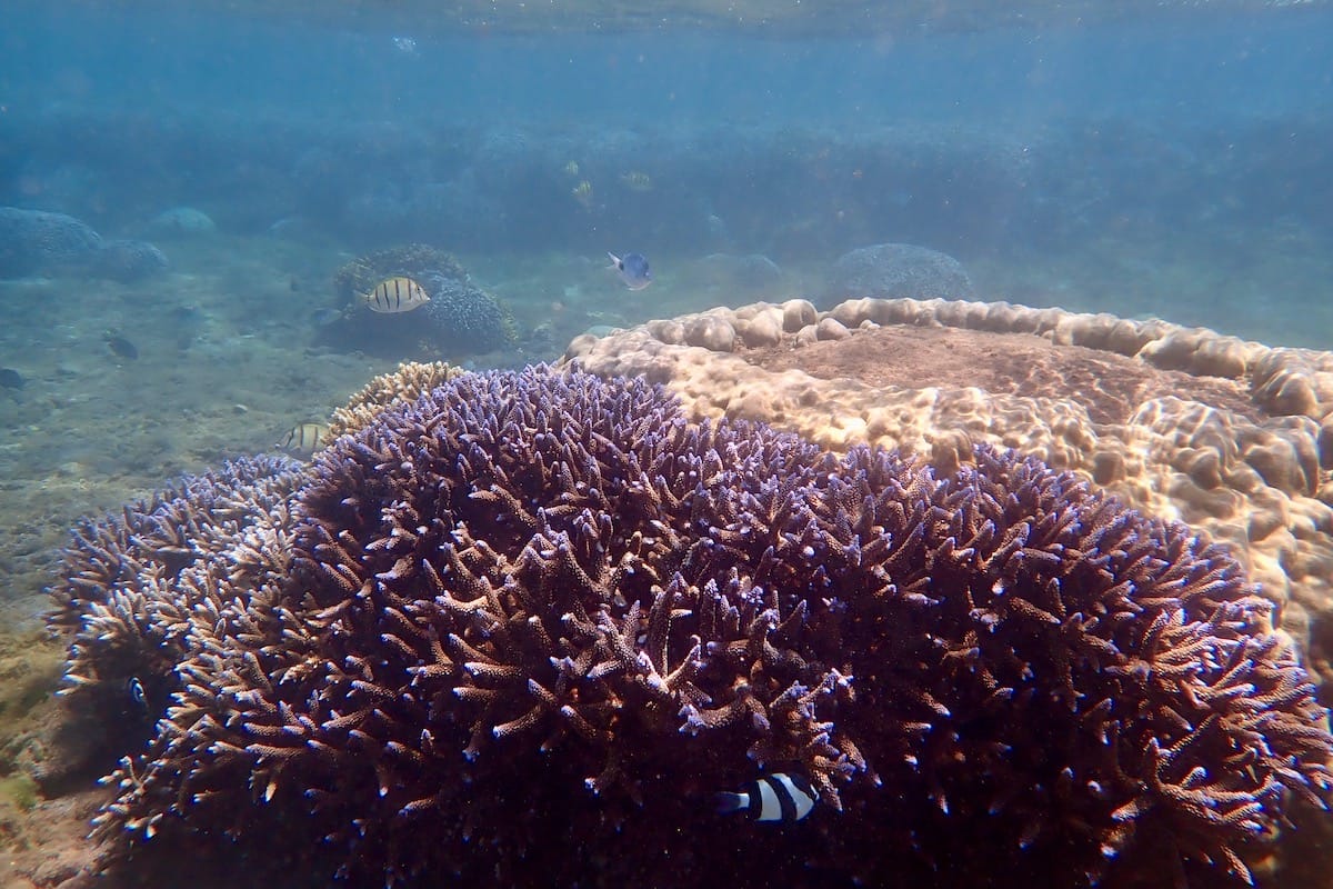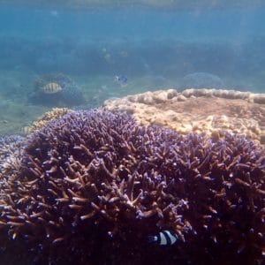 The predominant coral in the lagoon is the branching coral. It is beautiful, but also very fragile, and can break at the slightest touch of a swimfin. Be careful as you move forwards, especially if you go through narrow or shallow passages.