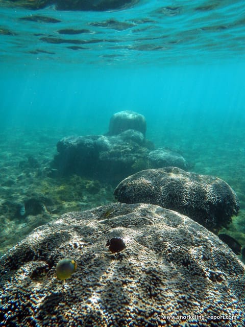 Snorkeling spots are part of a wild environment and their aspect can be significantly altered by weather, seasons, sea conditions, human impact and climate events (storms, hurricanes, seawater-warming episodes…). The consequences can be an alteration of the seabed (coral bleaching, coral destruction, and invasive seagrass), a poor underwater visibility, or a decrease of the sea life present in the area. Snorkeling Report makes every effort to ensure that all the information displayed on this website is accurate and up-to-date, but no guarantee is given that the underwater visibility and seabed aspect will be exactly as described on this page the day you will snorkel the spot. If you recently snorkeled this area and noticed some changes compared to the information contained on this page, please contact us.