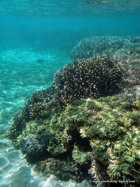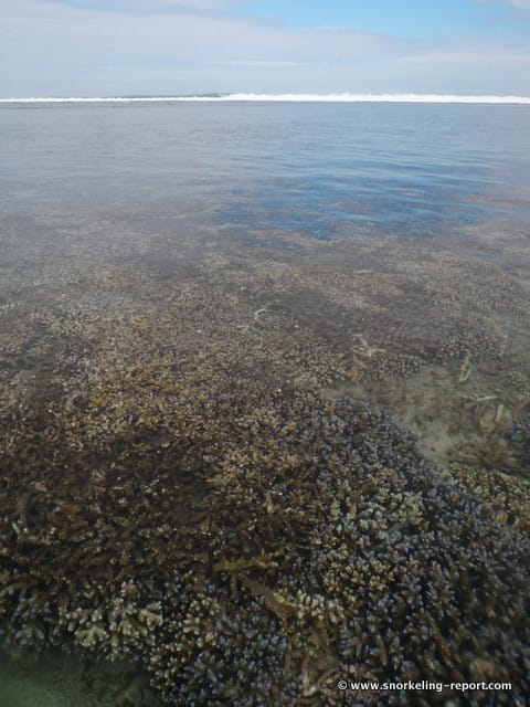 The closer you get to the barrier reef, the denser the coral becomes, until you can’t go any further. In any case, you should not try to, since the barrier reef and the depth of the water generally make it impossible.