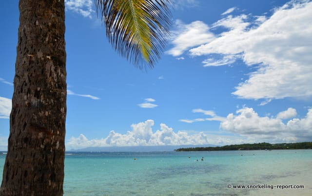 The area to explore is enclosed by the beach and the barrier reef, which are distant of 150 to 200m in this part of the lagoon. It covers sandy and grassy seabed, poor in coral, but relatively rich in underwater life.