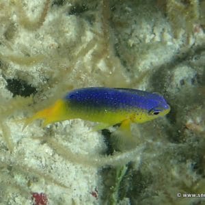 The rocks provide small areas of sea life that are interesting to explore. Small groups of grunt, beau gregory and yellowtail damselfish move between the rocks and small corals, which are colonized by a few sea urchins.
