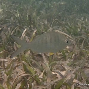You will also see juvenile blue tang and foureye butterflyfish, which are among the most colorful species in the lagoon. You can also explore the sandy seabed to find a queen conch, which are pretty common at this location.