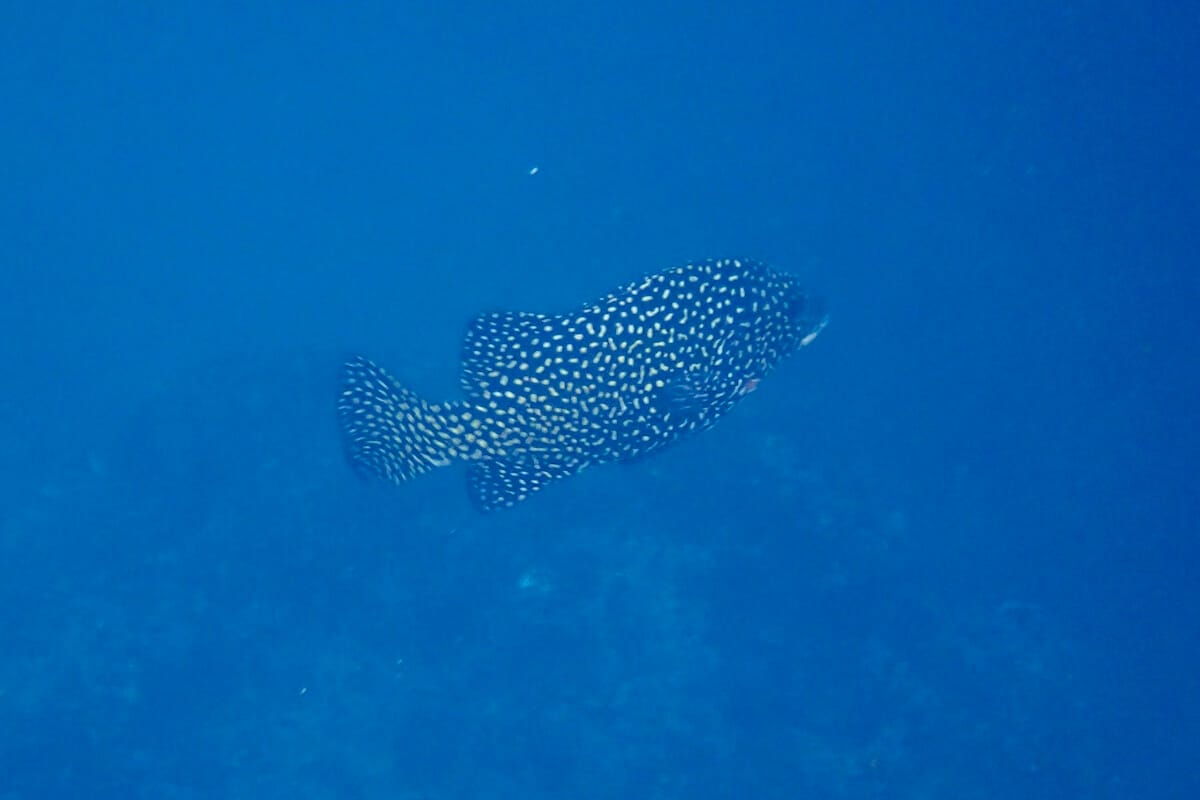 Many species of fish find shelter in the cracks of the wall, including large-banded blenny, coral hawkfish, and giant hawkfish.