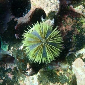 The site is also filled with large numbers of starfish and urchins, such as the Galápagos green sea urchin, the long-spined sea urchin and the slate pencil urchin (see species list at the bottom of the page.