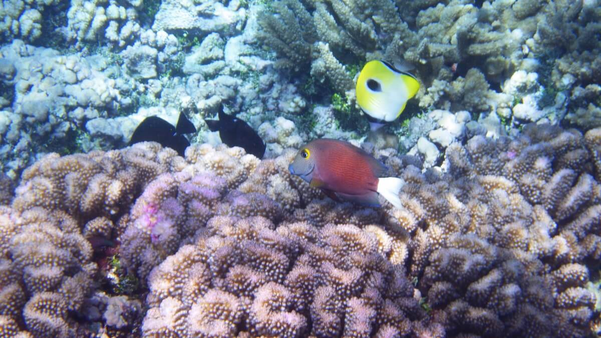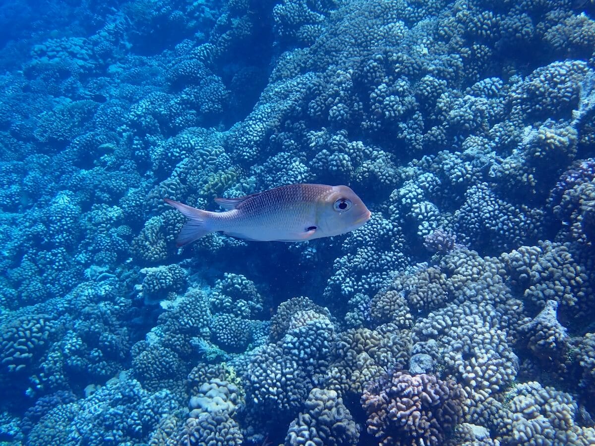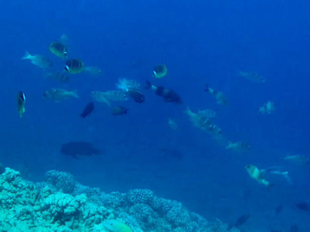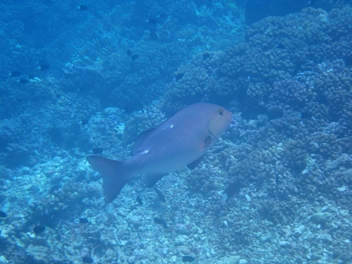 Around 15 individuals, including 2 or 3 bright green terminal phase males, live around the village. Peaceful and inquisitive, swimming with this unique fish will leave you with an unforgettable memory.