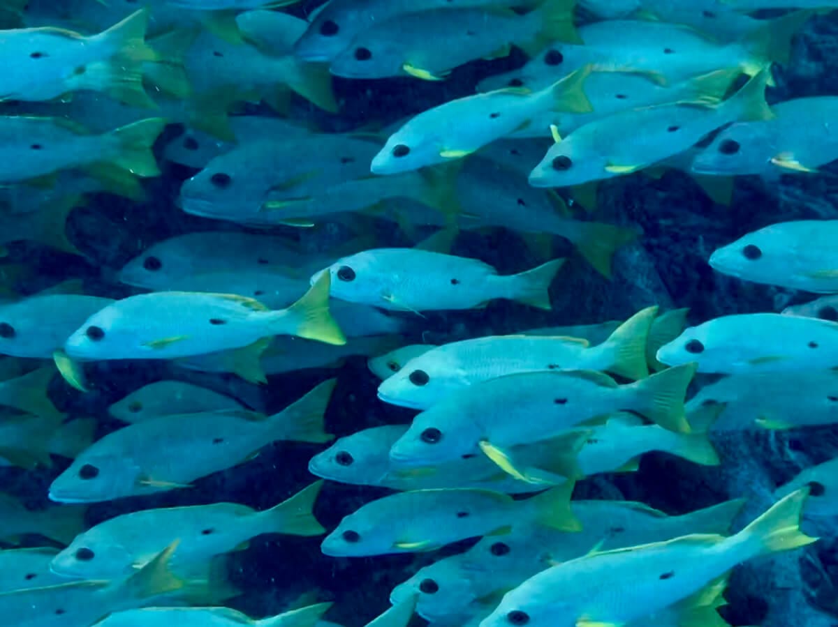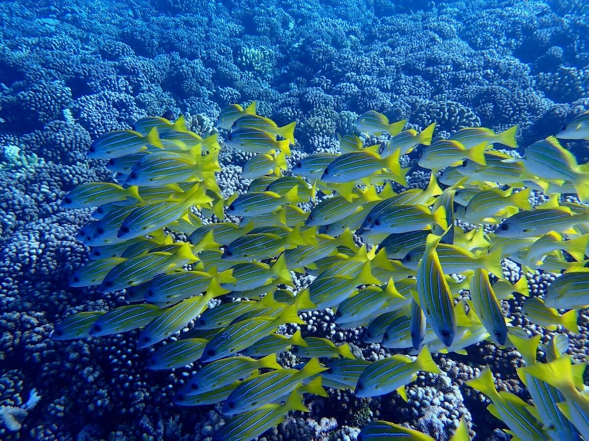Have a look under the jetties: in the shade, you’ll find huge schools of snappers, trumpetfish, groupers, moray eels, and resting Napoleons.