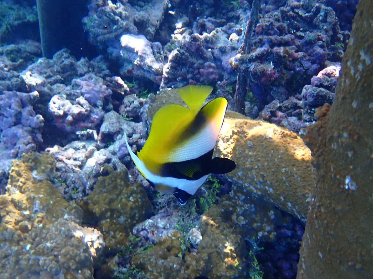In the healthy coral areas at the top of the drop-off, you’ll discover the diversity of Polynesian marine life, including about 10 species of butterflyfish, triggerfish, parrotfish, schools of yellowfin goatfish, and Moorish idols.